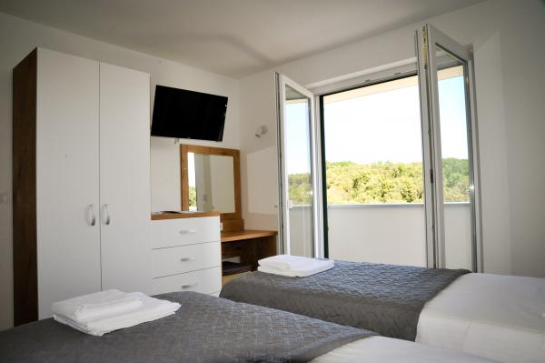 Új építésű objektum, 6 apartman, a legújabb szabványok és feltételek szerint. A szálláshely 3 perces sétára fekszik a strandtól és a gyönyörű Matovica-öböltől. Az apartmanok kényelmesek és teljesen felszereltek. Az objektum mellett van egy fűtött medence a létesítmény vendégei számára. Minden szobához külön fürdőszoba, síkképernyős TV, smink íróasztal tartozik. A szobákban a vendégek igényei szerint egyesíthető és elválasztható ágyak találhatók. A létesítményben, valamint az apartmanokban a bejárat kártyával vagy jelszóval lehetséges, így a vendégnek nem kell zavarnia a kulcsokkal. Minden apartmanhoz egy gyönyörű, nagy terasz és erkély tartozik.