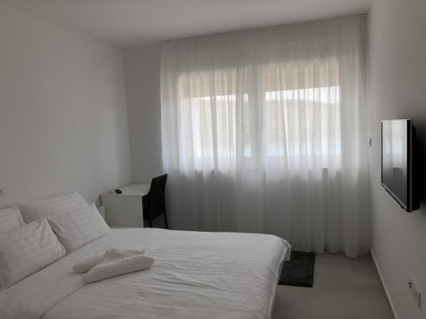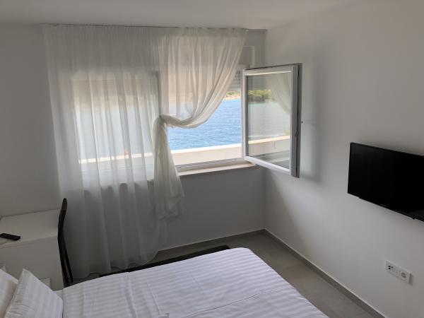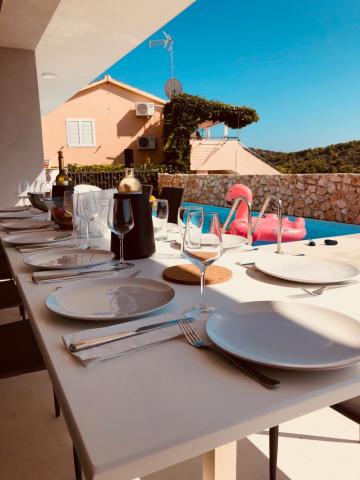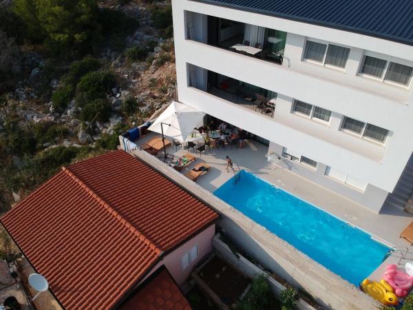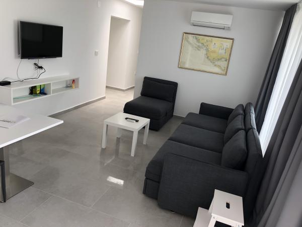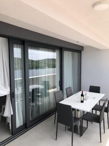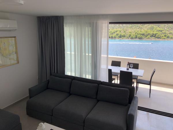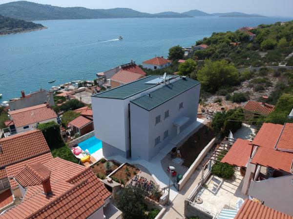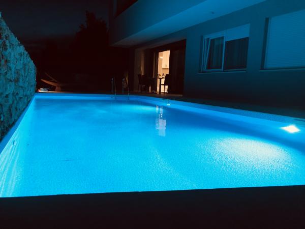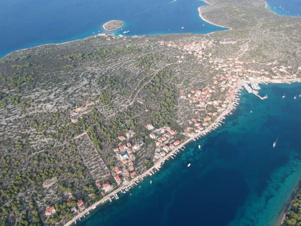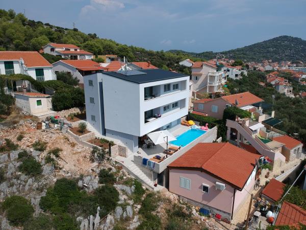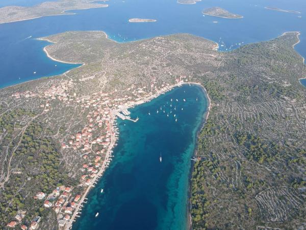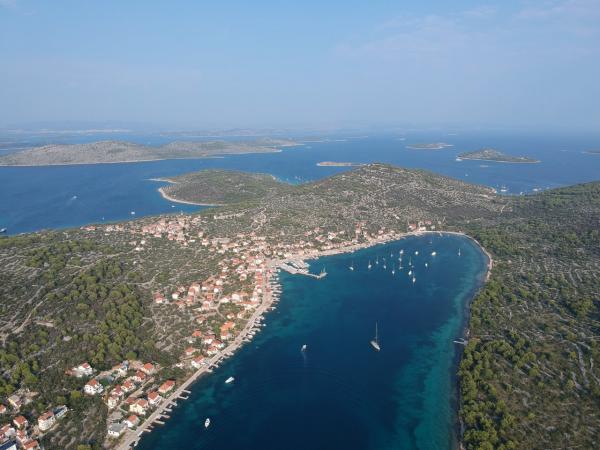 Luxus apartmanok egy vadonatúj villában Kaprije szigetén, a Sibenik-szigetvilágban. Gyönyörű mediterrán kert, privát strand 150 méterre a háztól. Kaprije egy gyönyörű sziget, amely autentikus tájat és életformát kínál Közép-Dalmáciában. Nincsenek autók, egzotikus természet, lenyűgöző strandok, mágikus naplementék és csendes, lenyűgöző éjszakák, ahol csak hullámokat hallhat ... Ideális mind a felejthetetlen családi vakációhoz, mind a romantikus nyaraláshoz ... Az apartmanok mindazt tartalmazzák, amit egy modern életmódban szoktatok. Kézzel készített bútorok és ágyak és csúcsminőségű készülékek. Két deluxe hálószoba dupla ággyal és négy kiváló minőségű kanapéval a nappaliban. Legfeljebb 8 vendég elszállásolására alkalmas. Selyemtakarók, bambusz párnák, lavander matracok ... Két fürdőszoba zuhanyzóval. Teljesen felszerelt konyha mosogatógéppel és mosógéppel, beépített szekrényben rejtve a teremben. Minden szoba AC egységekkel van felszerelve. Ingyenes WIFI. A Rocks apartman exkluzív hozzáférést biztosít a 32m2-es medencéhez.