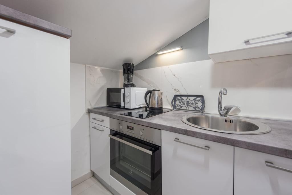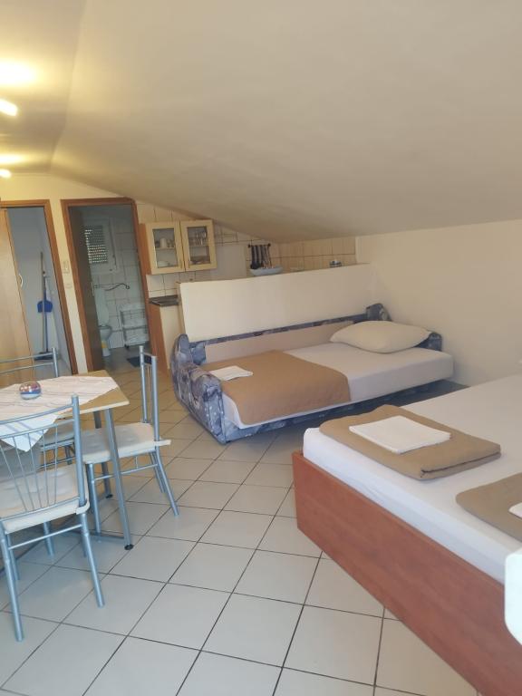 Apartmanok Sofia kínál 1 STUDIO apartman 4 fő részére és 1 APARTMAN külön hálószobával 4 fő részére. Az apartmanok teljesen berendezettek és felszereltek. Minden apartman saját terasszal, ingyenes WIFI-vel és légkondicionálóval rendelkezik. Az udvaron grillező található, melyet a vendégek ingyenesen használhatnak. A ház egy kis faluban, RIBARICA KARLOBAG közelében található. A hely kis családi strandokkal rendelkezik tömeg nélkül. Az apartmanok 30 méterre vannak a strandtól és a tengertől. A közelben egy étterem, pizzéria és Tatinja strandbár található. Alkalmas allergiások és asztmás betegek számára. Kellemes fogadtatást kívánunk!