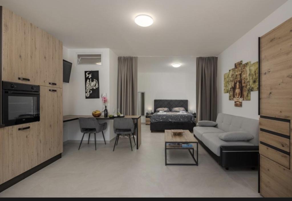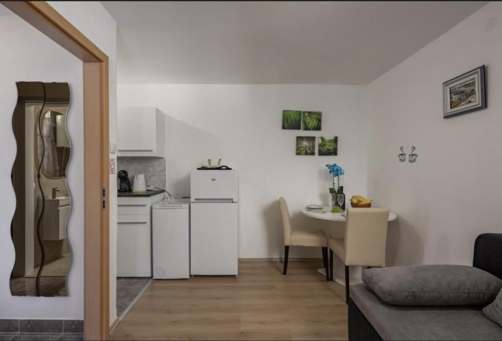 Az apartman Kastav egy kis, bájos, történelmi városában található, amely tökéletes a kikapcsolódásra és a nyaralásra. Kiváló elhelyezkedésének köszönhetően ideális kiindulópont Kvarner és környéke felfedezéséhez. Abbázia mindössze 7 km-re, Rijeka 10 km-re, Krk szigete 35 km-re, Trieszt és Isztria pedig mintegy 70 km-re található. A vendégek élvezhetik a nyugodt környezetet, miközben gyorsan elérhetik a tengert, a strandokat és számos kirándulóhelyet.