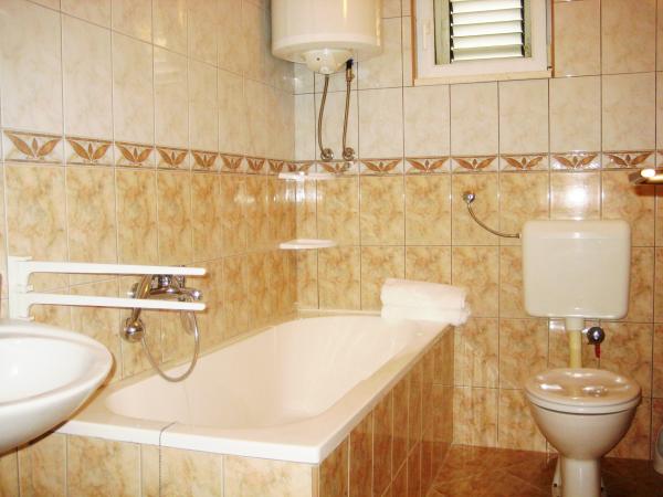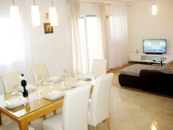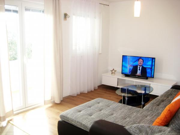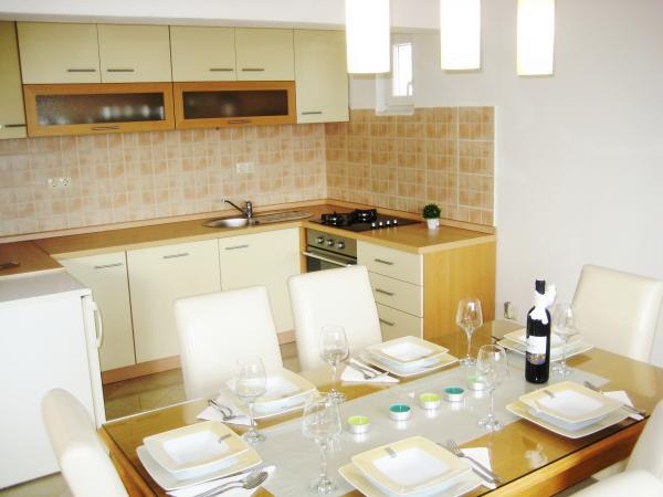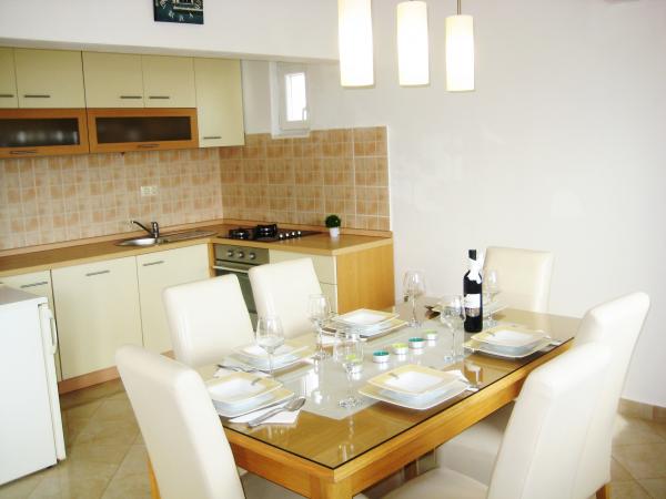 Apartman Antton szánt összesen 8 fő. és található egy ház egy csendes részén Kastel Kambelovac és nemrég felújított és kényelmesen berendezett. Ez áll egy tágas nappali / konyha és étkező, 3 hálószoba és 2 fürdőszoba. Minden ablak a nappali és az étkező lélegzetelállító kilátás nyílik a tengerre és olajfák, amelyek megtalálhatók a kertben. Élvezheti a barbecue a kertben, amely körül olajfák vagy a teraszon egy lenyűgöző kilátás. Az apartman három hálószoba, egy szoba két egyszemélyes ággyal, a másik 2 hálószoba, mindegyik egy dupla ágy. A két fürdőszoba teljesen felszerelt, beleértve a mosógépet. Az egyik fürdőszobában zuhanyzó és a második fürdőszoba káddal. A lakás minden kényelmi, amelyek szükségesek az üdülés alatt (ingyenes Wi-Fi-vel, légkondicionálóval, kábel TV, mosogatógép, mosógép, hajszárító, vasaló és vasalódeszka, törölköző, ágynemű.). . Két saját parkoló áll rendelkezésre a ház előtt.