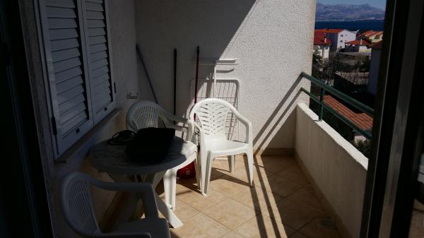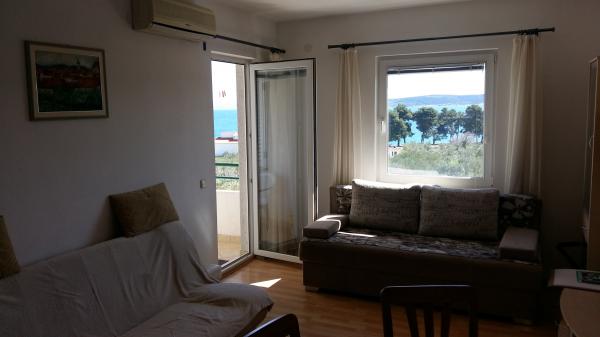 Az apartman a lakóház harmadik emeletén található, Kaštel Štafilić, Bile kerületben, a Resnik közelében. A tengerre néző, gyönyörű kilátás nyílik Kaštela, Split és a közeli szigetek egész öbölére. Az utca végén egy csendes helyen található, így nincs zaj. A 45m2-es apartman előszoba, fürdőszoba, hálószoba, nagy nappali konyhával és loggiával. A hálószobában egy nagyméretű kétszemélyes ággyal, a nappaliban egy nagyméretű kanapé található, amely nagyméretű kétszemélyes ággyal és egy kisebb háromszemélyes ággyal rendelkezik. A konyha teljesen felszerelt, kávéfőző, mosogatógép, sütő. A loggián elektromos grillsütőt lehet használni. Az apartman rendelkezik hajszárítóval, porszívóval, vasalóval. Az éghajlat használata nem kerül kifizetésre.