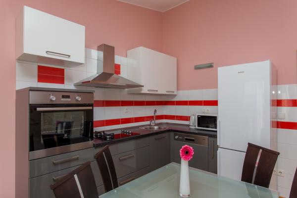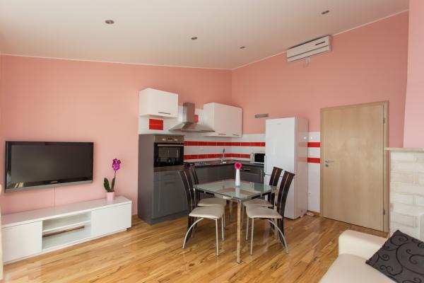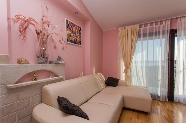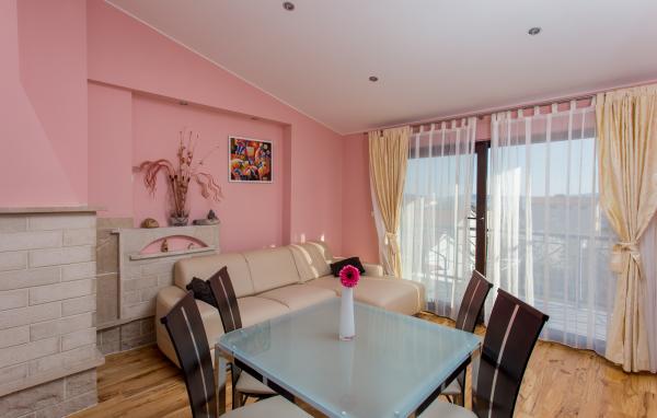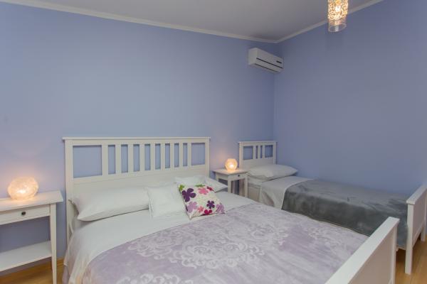 Teljesen berendezett apartman 5 fő részére, egy csendes részén, a Kastel Kambelovac mindössze 3 perc sétára a strandtól és éttermek. Az apartman található, a második emeleten található, kilátással a tengerre. A mérete 65m2, két hálószoba, nappali, konyha, étkező és két terasz és egy fürdőszoba. Az első hálószobában egy nagy franciaágy és egy egyszemélyes ágy található. A második hálószobában egy dupla ágy két fő részére. A konyha teljesen felszerelt, minden szükséges eszközök és berendezések (mikrohullámú sütő, vízforraló, botmixer, kávéfőző.).