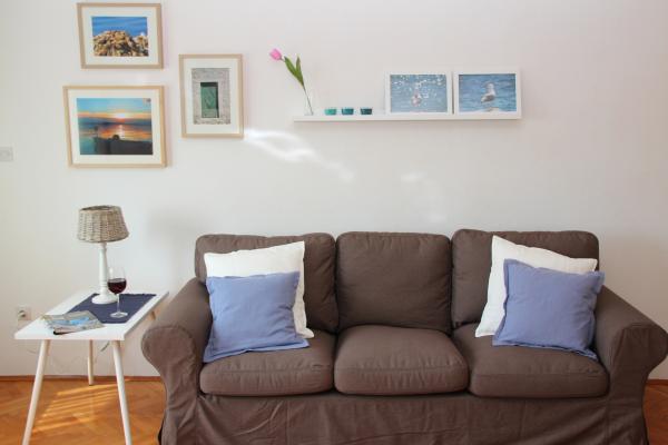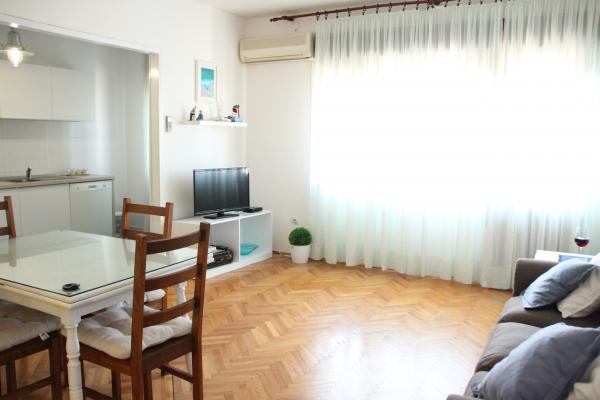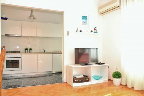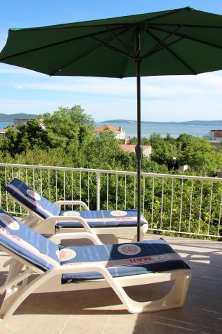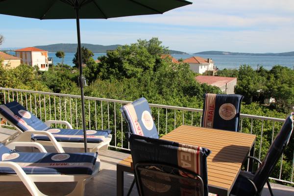 Kényelmes, teljesen berendezett két hálószobás apartman tengerre néző kilátással. Található egy csendes részén, a Kastel Kambelovac, zöldövezeti mediterrán növények füge, cseresznye, meggy, mandarin, szőlő, olajfa. Apartman (85 m) foglalja el az első emeleten a családi otthon, található egy telken 4000m. Ez egy tágas, déli tájolású terasz (30m) egy szép és pihentető öbölre néző. Ez csak néhány perc séta a tenger, tengerpart, park, sétány, éttermek, üzletek. Töltse nyaralását egy kastélyban, a város hét falu lábánál a Kozjak lejtőin. Úgy érzi, az élet a dalmát. Ébredjen a tenger illatát és a madarak csiripelnek. Menj körbe a várak, kastélyok, templomok, templomkertben, séta utcáin. Kóstolja meg az autentikus helyi élelmiszer kiváló, megfizethető éttermek. Látogasson el Split és Trogir található, mindössze 10 km, hisszük, hogy lesz egy felejthetetlen nyaralást.