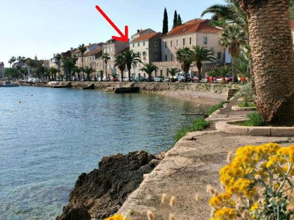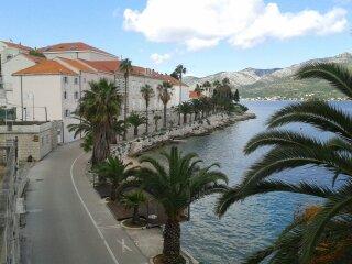 Ez szépen berendezett apartman max. 6 fő található a part mentén, gyönyörű kilátással a tengerre és az óvárosra. Két hálószoba, nappali, konyha, étkező, két fürdőszoba, teraszok és erkélyek kilátással a virágos kert. A lakás légkondicionált, és valamennyi szükséges eszköz egy kényelmes tartózkodást.