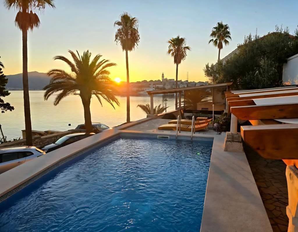 Az ID 759 apartman 83 m2-es. Luxusan berendezett, Korčula városának gyönyörű tengerparti részén. Az apartmanhoz saját úszómedence, két nagy terasz és egy napozóterasz tartozik. Az apartmanban minden megtalálható, amire egy nyaraláshoz szüksége lehet. Két légkondicionáló, egy nagy fürdőszoba, két TV, kellemes, kényelmes tér, két hálószoba, és saját parkolóhely a járművének. Szó szerint 5 perc sétára van a városközponttól és 2 percre a strandtól. A teraszon grillezési lehetőség is biztosított a gasztronómiai élvezetekhez. Az apartmanban mosógép és szárítógép, mosogatógép, két kávéfőző, kenyérpirító, gyümölcslékészítő stb. található. Teljesen és modernül felszerelt apartmanok Korčula városának csendes részén, a tengertől első sorban; A létesítmény 5 perc sétára található a városközponttól, a strand és a parkolás közvetlenül előtte található. Az ID 760 és ID 761 apartmanok és szobák, valamint az ID 5589 és ID 5599 szobák luxus színvonalúak. A hátsó terasz pergolával és ponyvával van borítva. Saját parkolód van.