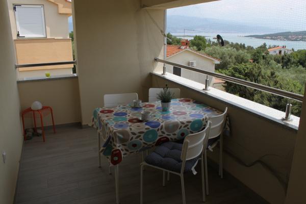 Új és modernen berendezett apartman, nagy erkéllyel és kilátással a tengerre.