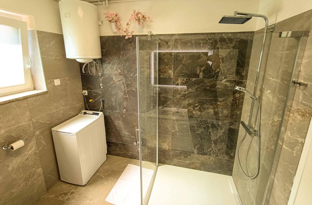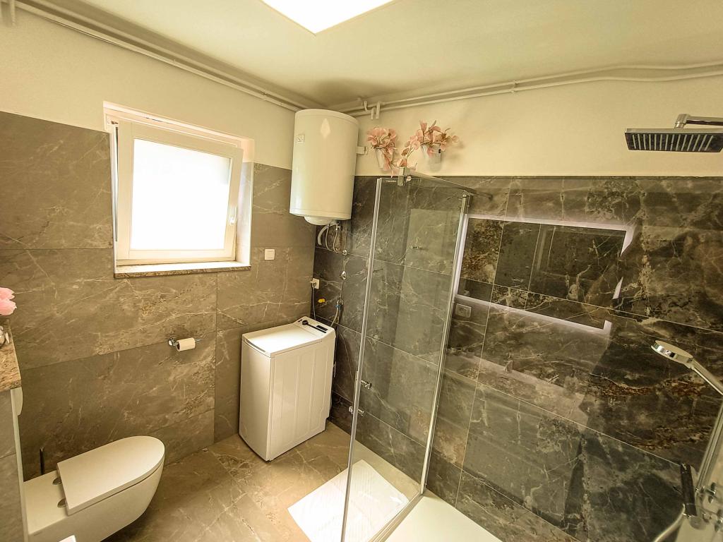 Az apartman Krk nyugati részén található, 200 m-re. a strandtól és csak 5 percre. sétára a városközponttól, a várost rengeteg zöld növény veszi körül. Az apartman két kétágyas hálószobából, étkezőből, konyhából, fürdőszobából és tágas loggiából áll, valamint saját fedett parkolóval rendelkezik, amely a város nagyon csendes részén található, nagy forgalom nélkül, csupán néhány perc sétára számos gyönyörű városi strandtól. A teraszról gyönyörű kilátás nyílik a környező növényzetre és a város egy részére, és tökéletes hely egy csendes délutáni pihenéshez vagy egy kellemes ebédhez / vacsorához. A szobák minden olyan eszközzel fel vannak szerelve, amelyek kellemesebbé teszik tartózkodását, és lehetővé teszik, hogy otthon érezze magát nálunk. A szállás ára magában foglalja a teljes ágyneműt (lepedő, törölköző, konyharuha ...), a konyha teljesen felszerelt (tányérok, edények, mikrohullámú sütő, kávéfőző, kávéfőző ...) és a lakás végső takarítása is az ár tartalmazza. Van egy légkondicionáló berendezés is, amely sokkal kellemesebbé teszi tartózkodását a forró és párás napokon.