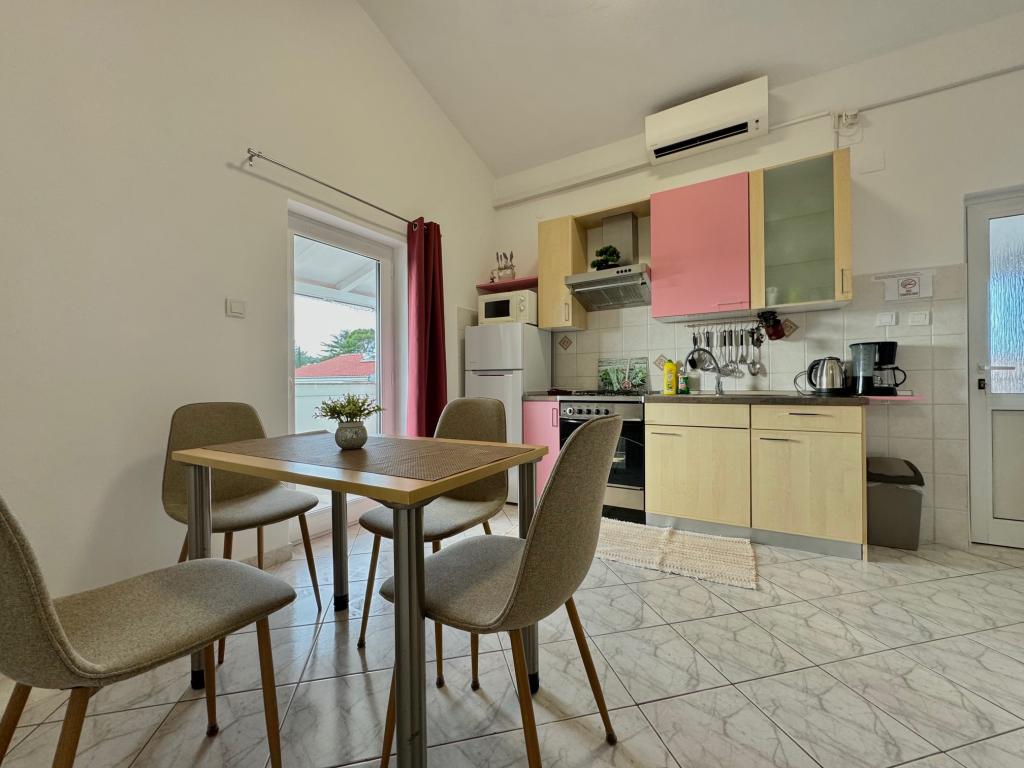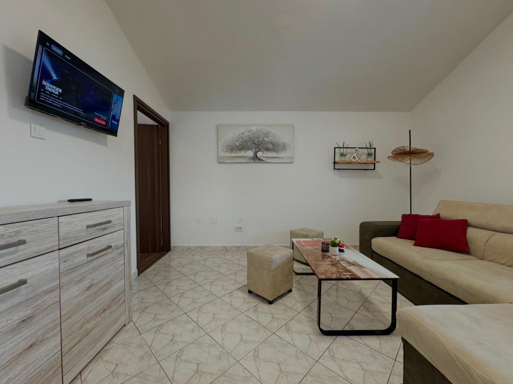 A ház nagyon kényelmes helyen, csendes környéken található, pár perc sétára a strandtól és tíz perc sétára a belvárostól. A létesítmény 5 apartmanból áll. Közülük három stúdió maximum 2 fő részére, egy apartman maximum 3 fő részére és egy 75 négyzetméteres apartman maximum 5 fő részére. Minden apartmanhoz teljesen felszerelt konyha, szép erkély vagy terasz, külön bejárat és őrzött parkoló tartozik. A közös kertben grillezési lehetőség áll a vendégek rendelkezésére. ***Kisállatokat előzetes bejelentéssel és napi 12 eur felár ellenében fogadunk (helyszínen fizetendő).