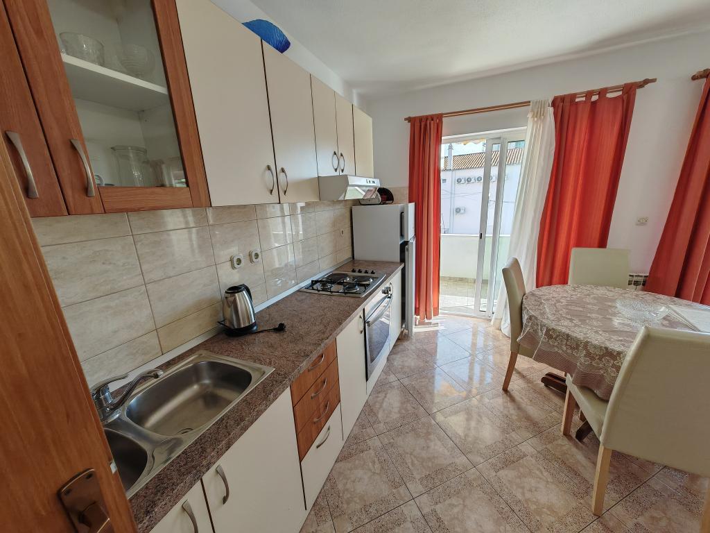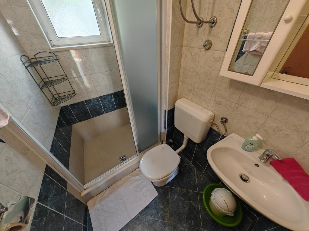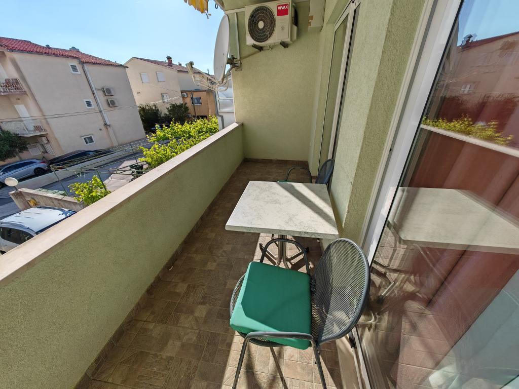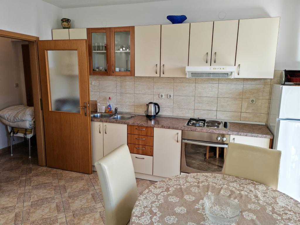 Apartmanház első emeletén, a strand közvetlen közelében, kb. 50 méterre. Nagy erkély tengerre néző kilátással, ingyenes wi-fi, ingyenes parkolóhely az épület előtt. Az apartman 3 felnőtt, egy vagy két kisgyermekes pár számára alkalmas. Kiváló helyen található, jól felszerelt és berendezett.