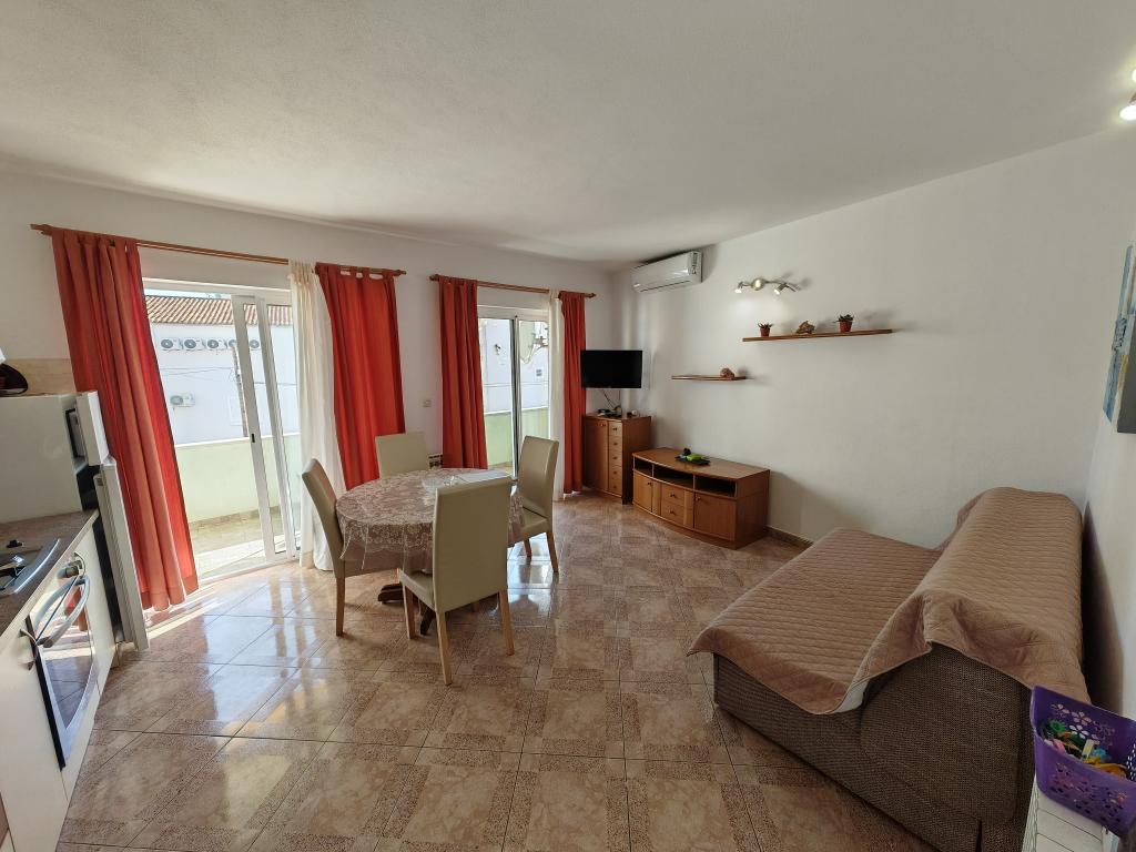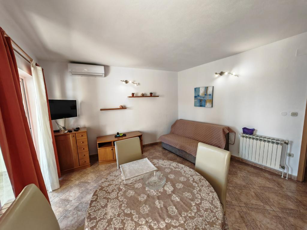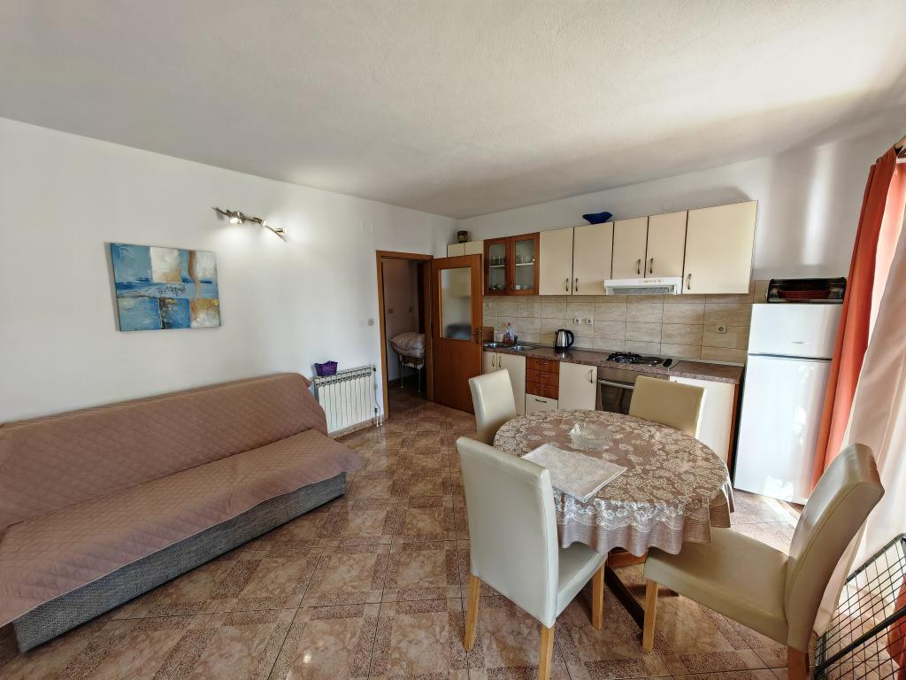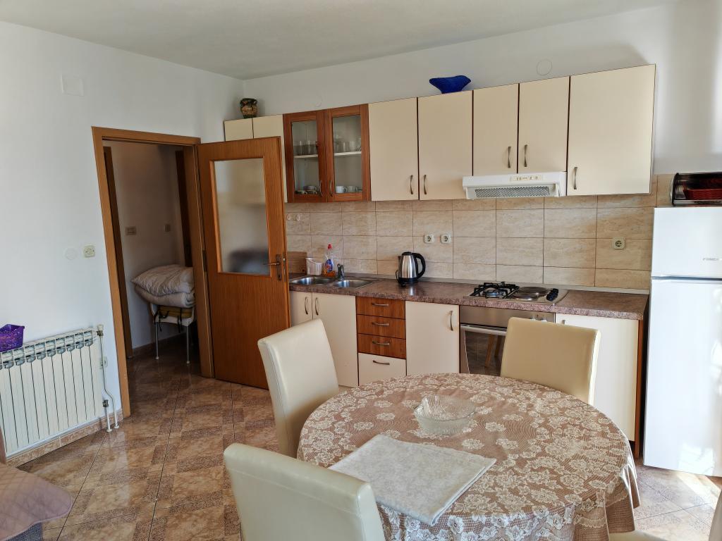 Apartmanház első emeletén, a strand közvetlen közelében, kb. 50 méterre. Nagy erkély tengerre néző kilátással, ingyenes wi-fi, ingyenes parkolóhely az épület előtt. Az apartman 3 felnőtt, egy vagy két kisgyermekes pár számára alkalmas. Kiváló helyen található, jól felszerelt és berendezett.