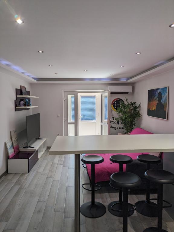 Üdvözöljük modern, újonnan berendezett és központi elhelyezkedésű apartmanunkban Makarska szívében, a legrégebbi utcában, a Kalalarga utcában, közvetlenül a főtér mellett. Az apartmanban két hálószoba, két fürdőszoba, két légkondicionáló, egy 160 cm-es TV, Netflix, mosogatógép, mosógép, teljesen felszerelt konyha és egy nagy ablakos nappali található. Az apartman a földszinten található, és két külön bejárattal rendelkezik. Teljesen elkülönül a ház többi részétől. Teljes magánélet.