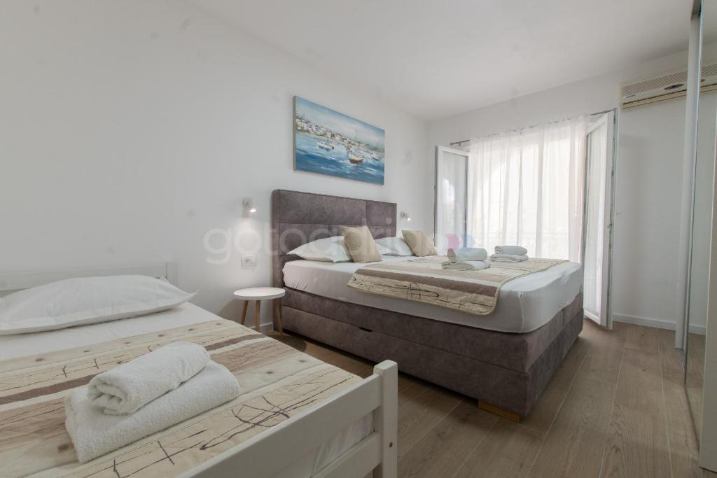 Két apartman áll rendelkezésre különböző címeken. Mindkét apartman a város egy csendes részén található. Az A4-es létesítmény a Zadarska 58B címen található, míg az A4+1-es létesítmény a Splitska 60 címen. Az apartmanok teljesen és modern módon felszereltek minden szükséges eszközzel, ami lehetővé teszi a kényelmes és kellemes tartózkodást. Mindkét helyszínen ingyenes privát parkolás biztosított. Minden hálószoba légkondicionált, és kényelmes, tágas franciaággyal (180x200) rendelkezik. A hálószobákban okos TV is található. Mosógép és mosogatógép is rendelkezésre áll mindkét létesítményben. Törölköző és ágynemű biztosított ezekben az apartmanokban.