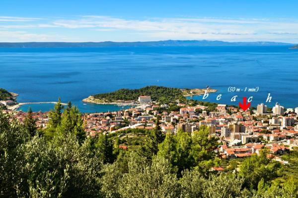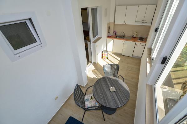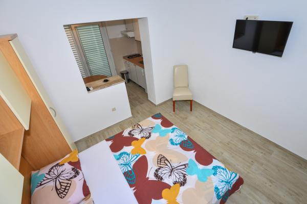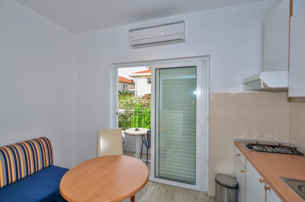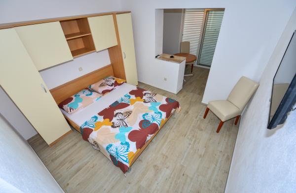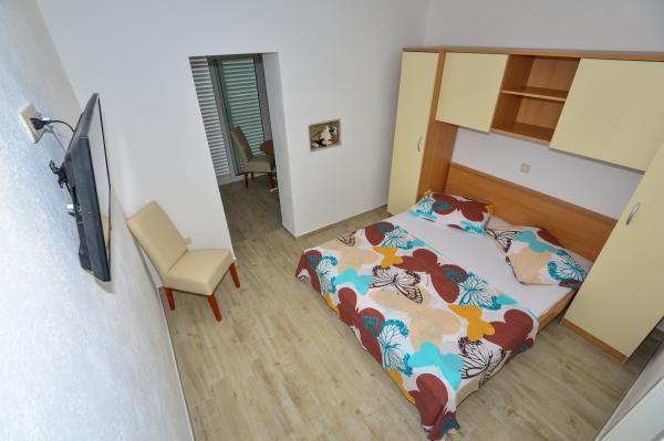 Apartmanok Dina csak egy perc séta a tengerparton, egy csendes utcában, nincs zaj. Városközpont kevesebb, mint 5 perc sétára, és a közeli, amire szükség van, üzletek, éttermek, diszkó, strand ...