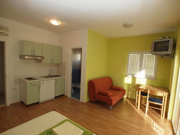 A modern apartman egy csendes részén a Makarska, tengeri, városi strandok, szigetek, a strand 4-5 perc könnyű sétára a városközponttól 10 perc séta a tenger