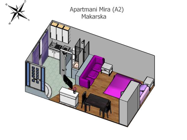 Apartmanok Mira található a nyugati részén, a város Makarska, a második emeleten, a ház, csendes környezetben, gyönyörű kilátással az Adriai-tengerre és a félsziget a Szent Péter. Az apartmanok újonnan felújított és légkondicionált, és a vendégek számukra ingyenes WiFi és műholdas programok. Minden vendég ingyenes parkolási lehetőséggel. A hosszú aprókavicsos strandtól mindössze 50 méterre a házunk, tele vonzó nyári tevékenységek, mint parasailling, jet ski, vízcső, bungee jumping, vízisí, kalandpark ... és a kevésbé adrenalin vannak kefalometriás a-boat, rent-a-bike, teniszpályák, masszázs, közel a tengerhez .... a gyerekek jobbra lent lakásunkban van egy vízi park és játszótér. A központ a Mira apartmanok 10 perc sétára. Az apartmanok ideálisak gyermekes családok és az emberek, akik nyugodt és pihentető nyaralás. Elég messze a pihenésre a zaj és a tömeg, de nagyon közel van az összes funkcióját a gyönyörű város az Adriai-tenger partján.