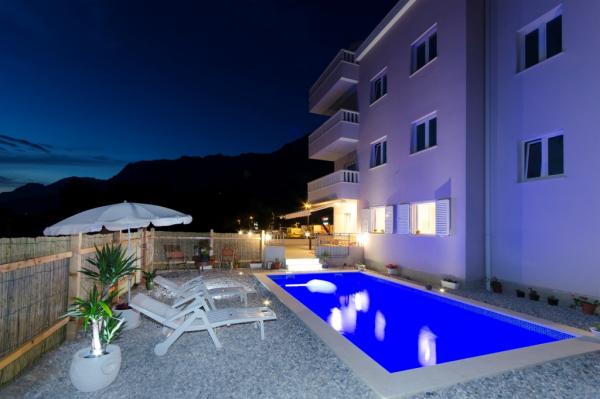 Apartman a keleti részén a város Makarska található, újonnan épült házak, a másik lakás van zárva, a medence használatára a vendégek egy lakás, ingyenes parkolást, minden szoba légkondicionált, el.roštilj. A létesítmény található, 10 perc. sétára a városközponttól, az azonos távolságra a strandtól (a város).