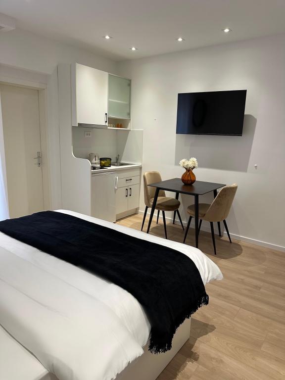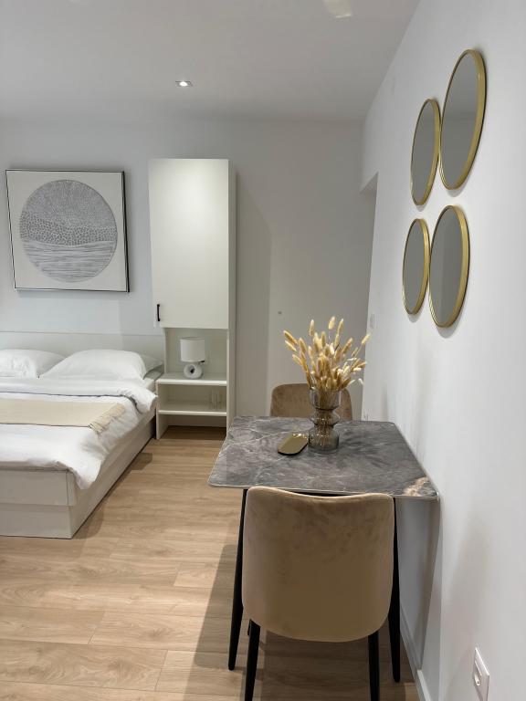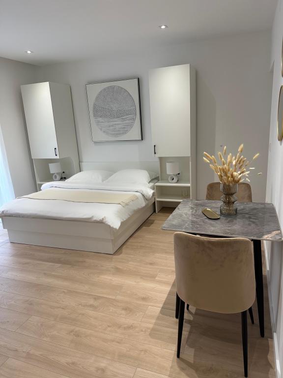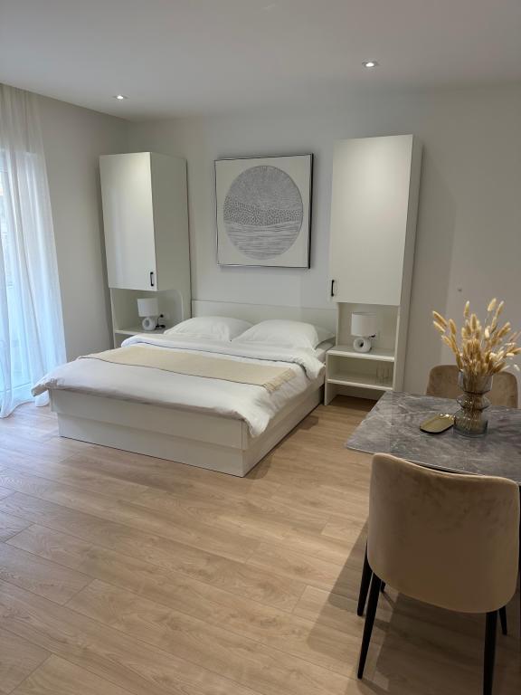 A teljesen felújított Olga 1 apartmanok Makarskában, a "Plaža" negyedben találhatók, mindössze 50 méterre a tengertől és a strandtól. 3 apartmant kínálunk a ház 1. emeletén. Ezenkívül egy 4 fős apartmant is kínálunk a földszinten. Minden apartman légkondicionálóval, saját fürdőszobával, felszerelt konyhával, SMART TV/SAT-val, WiFi-vel és erkéllyel rendelkezik, ahol kellemesen töltheti az idejét. A ház előtti udvarban privát parkoló található. A legközelebbi szupermarket 100 méterre, az éttermek és kávézók pedig 50 méterre találhatók a strandon. A városközponttól gyalog 5 perc távolságra vannak. Az apartmanok csendes és nyugodt környezetben találhatók.