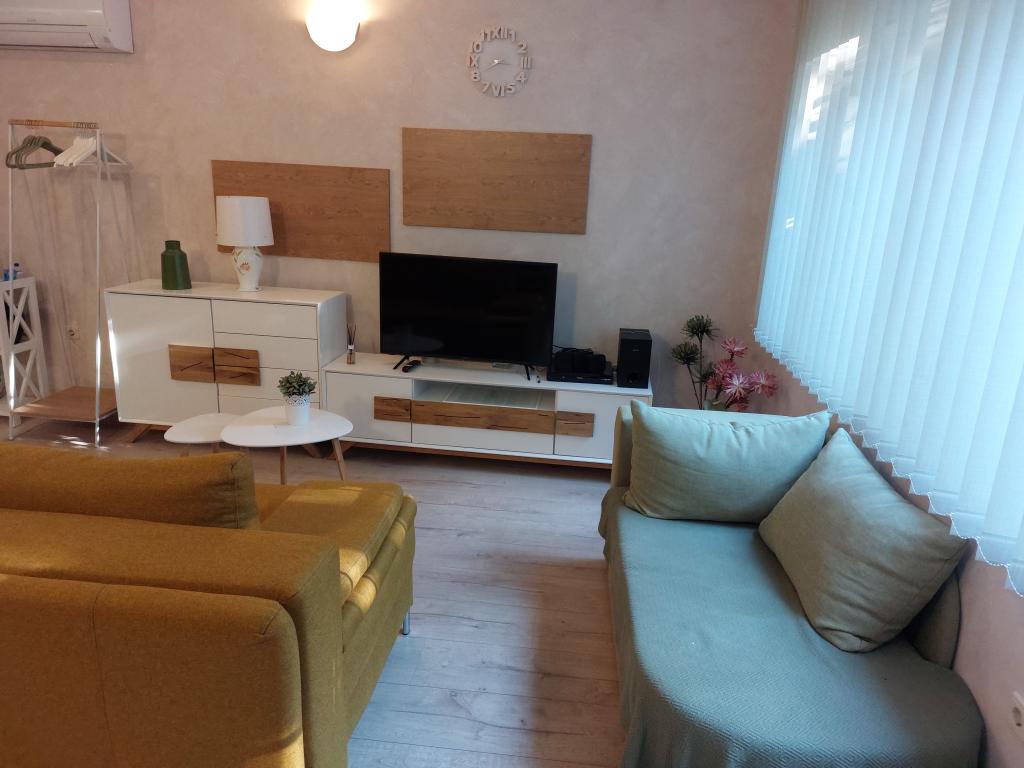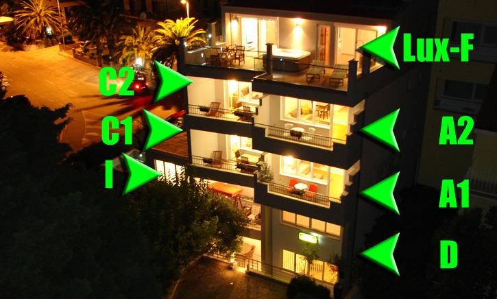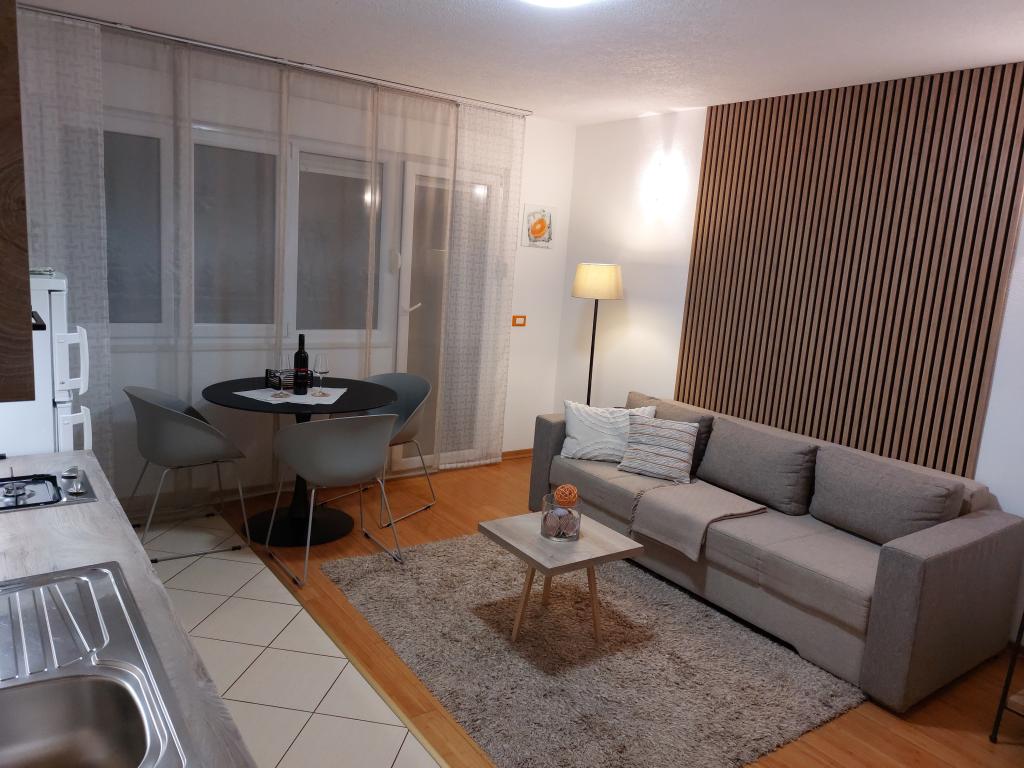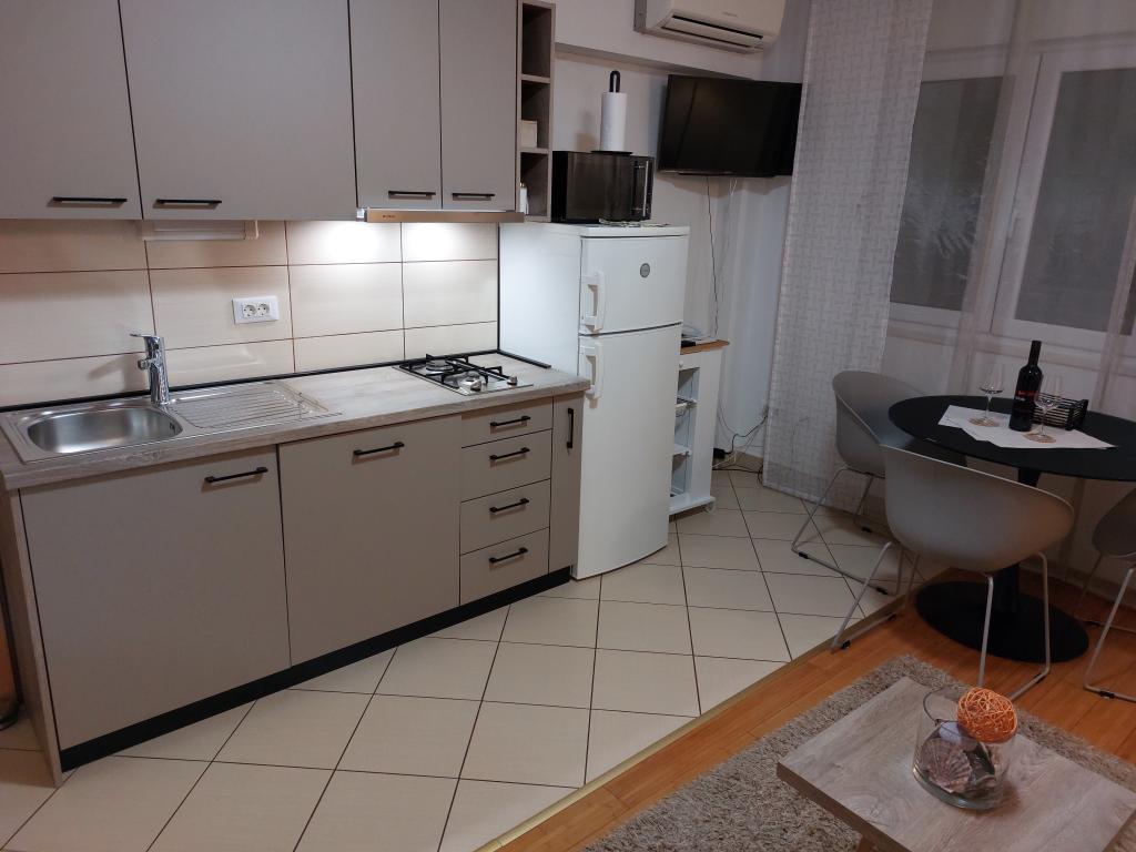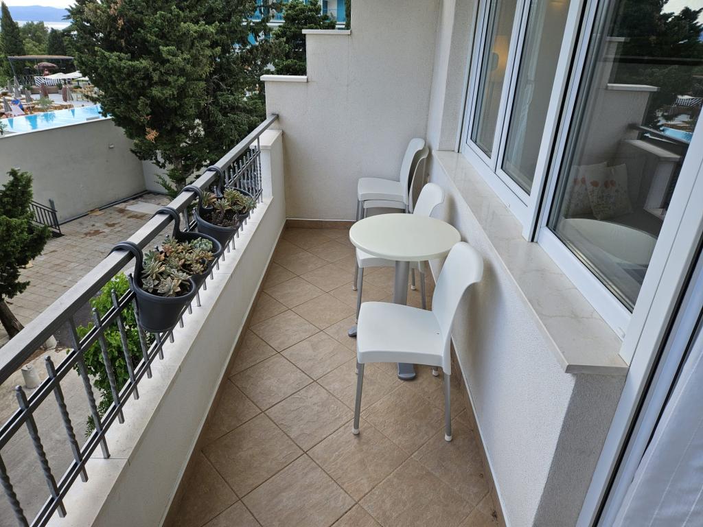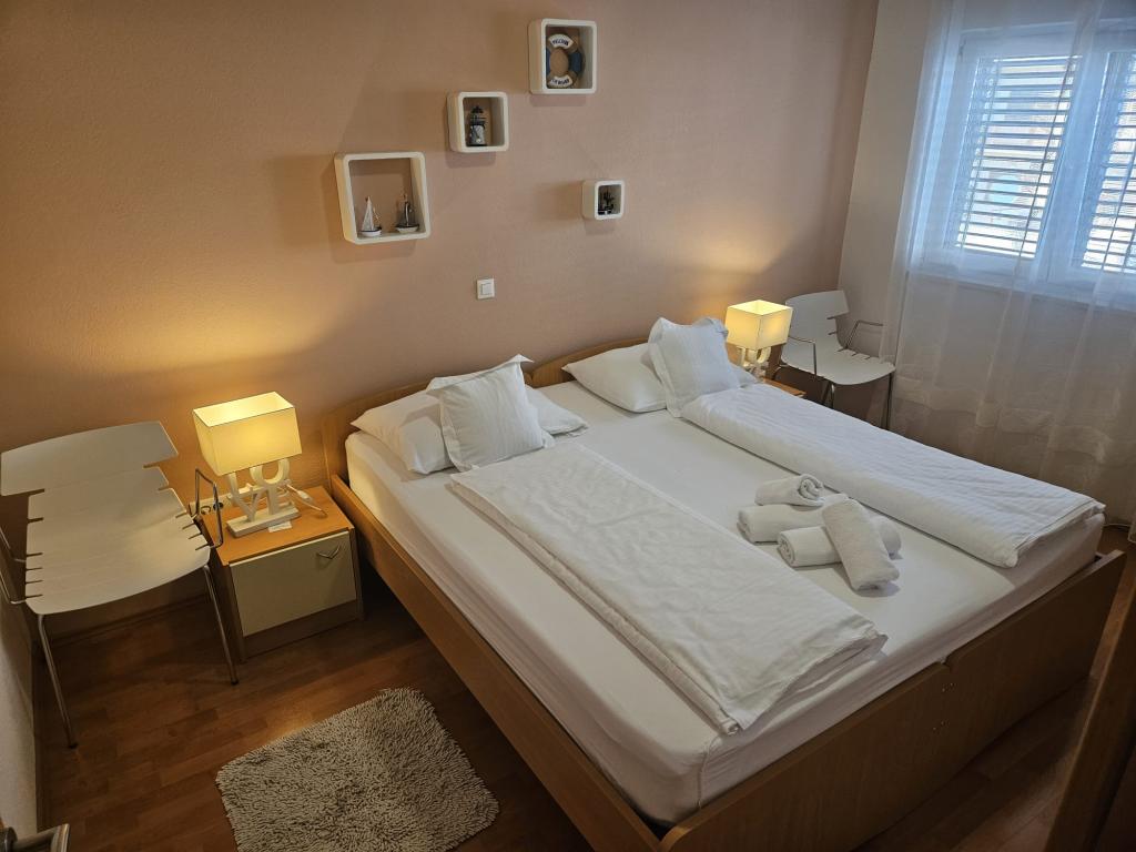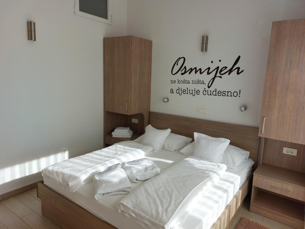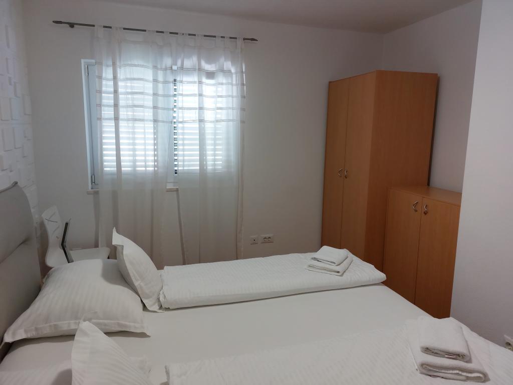 Apartmanjaink modernek és teljesen felszereltek, hogy tartózkodása a lehető legkényelmesebb és leggondtalanabb legyen. Minden apartmanban vasaló és vasalódeszka, hajszárító, filteres kávéfőző, vízforraló és mikrohullámú sütő található. A vendégek rendelkezésére állnak az ételek elkészítéséhez és tálalásához szükséges összes eszköz. Minden szállásegység síkképernyős TV-vel, ingyenes Wi-Fi-vel, beltéri és kültéri ülő- és pihenősarokkal felszerelt. A szállásegységek légkondicionáltak. A parkolást előre kell foglalni a létesítményen belüli korlátozott parkolóhelyek száma miatt. Érkezéskor friss ágynemű és törölközők várják Önt, amelyeket megbeszélés szerint cserélnek. Gyermekágy előzetes bejelentkezés alapján ingyenesen bérelhető. A létesítményen belül egy közös udvar található ülőbútorokkal, mediterrán növényekkel körülvéve - ideális hely a kikapcsolódásra. A létesítmény csendes környéken található, a tengertől a második sorban, mindössze 2 perc sétára a strandtól és tíz perc könnyű sétára a központtól.