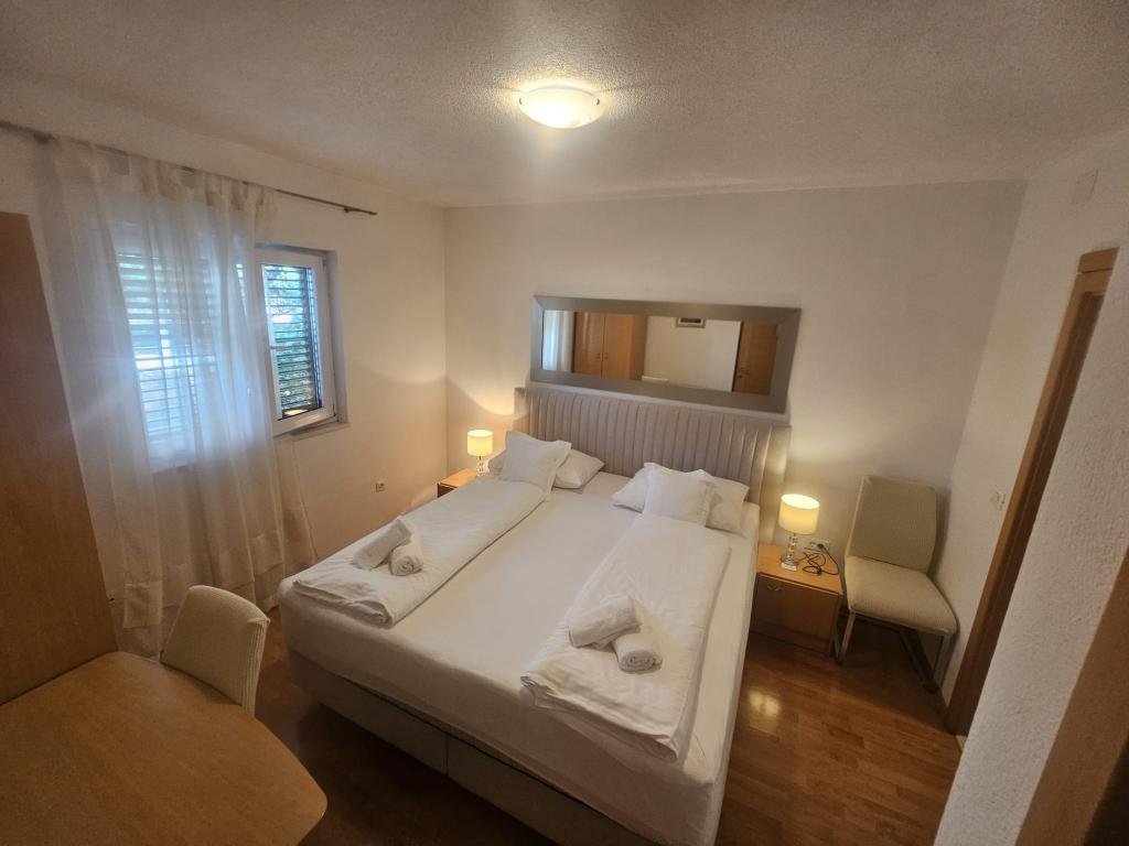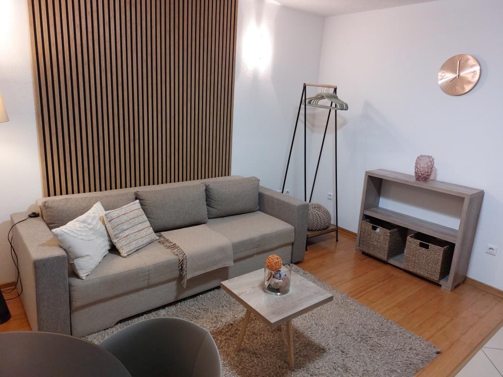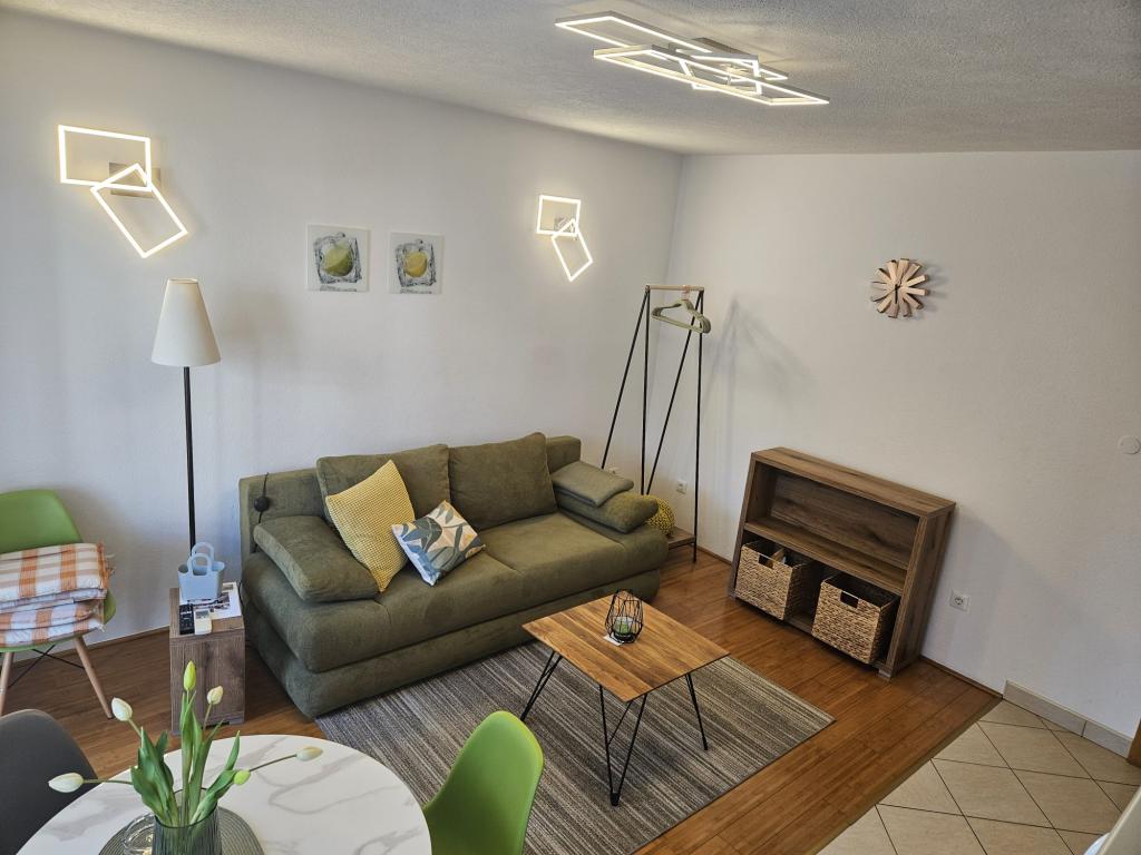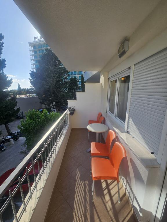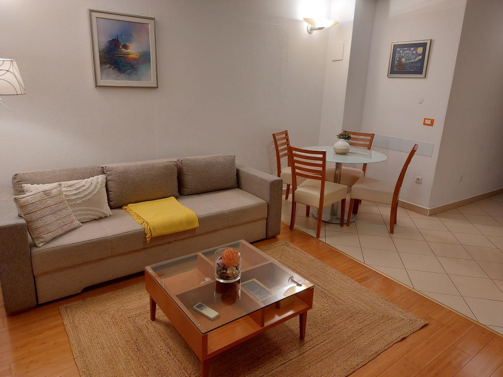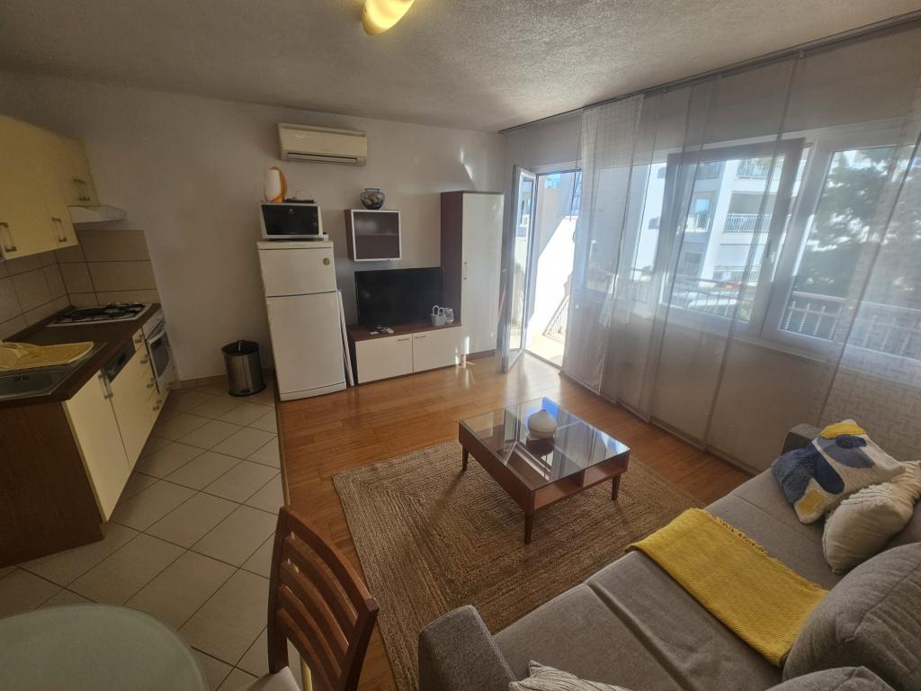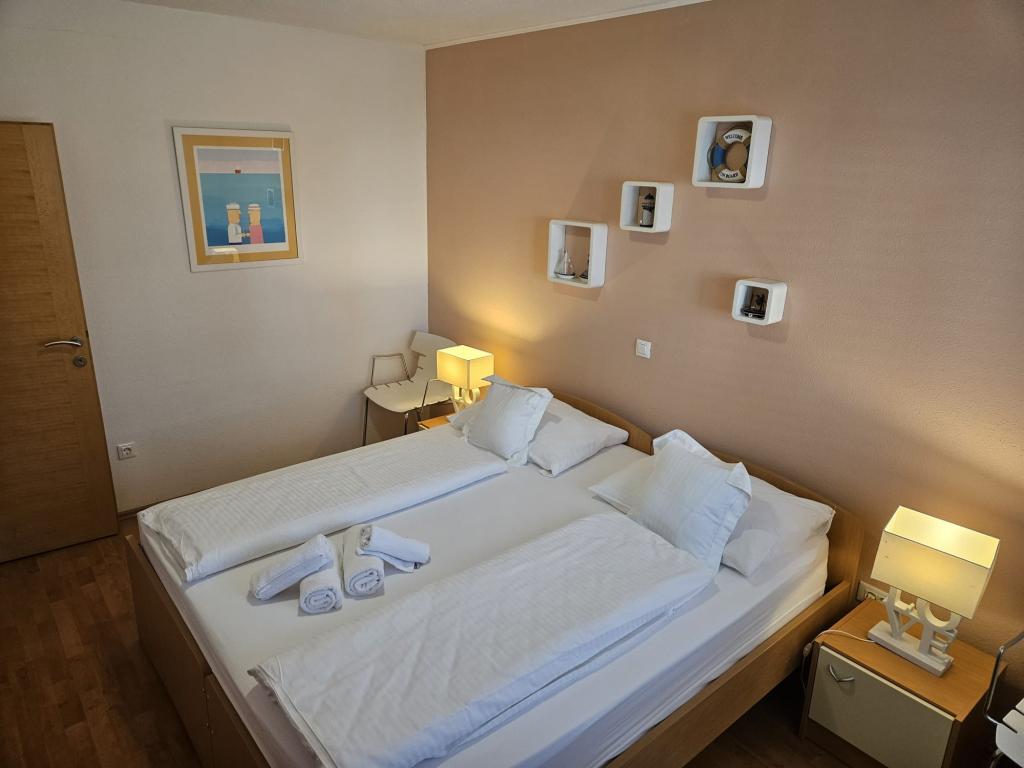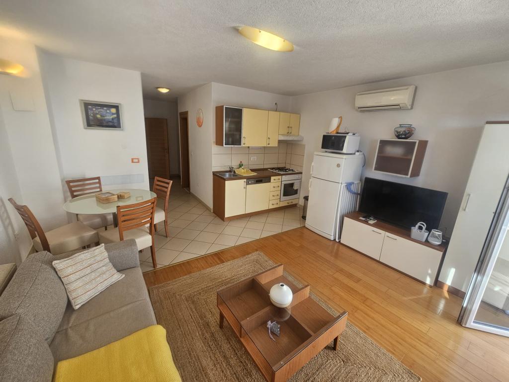 Apartmanjaink modernek és teljesen felszereltek, hogy tartózkodása a lehető legkényelmesebb és leggondtalanabb legyen. Minden apartmanban vasaló és vasalódeszka, hajszárító, filteres kávéfőző, vízforraló és mikrohullámú sütő található. A vendégek rendelkezésére állnak az ételek elkészítéséhez és tálalásához szükséges összes eszköz. Minden szállásegység síkképernyős TV-vel, ingyenes Wi-Fi-vel, beltéri és kültéri ülő- és pihenősarokkal felszerelt. A szállásegységek légkondicionáltak. A parkolást előre kell foglalni a létesítményen belüli korlátozott parkolóhelyek száma miatt. Érkezéskor friss ágynemű és törölközők várják Önt, amelyeket megbeszélés szerint cserélnek. Gyermekágy előzetes bejelentkezés alapján ingyenesen bérelhető. A létesítményen belül egy közös udvar található ülőbútorokkal, mediterrán növényekkel körülvéve - ideális hely a kikapcsolódásra. A létesítmény csendes környéken található, a tengertől a második sorban, mindössze 2 perc sétára a strandtól és tíz perc könnyű sétára a központtól.