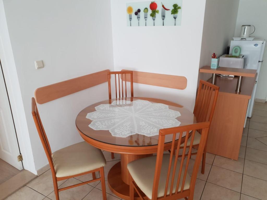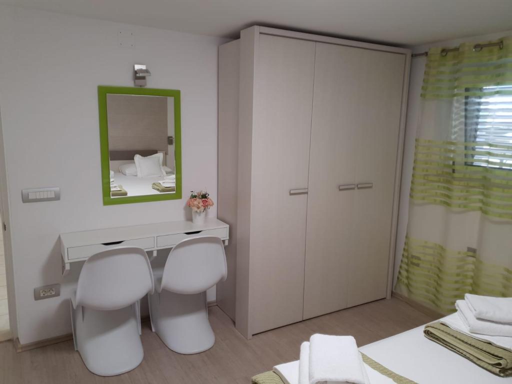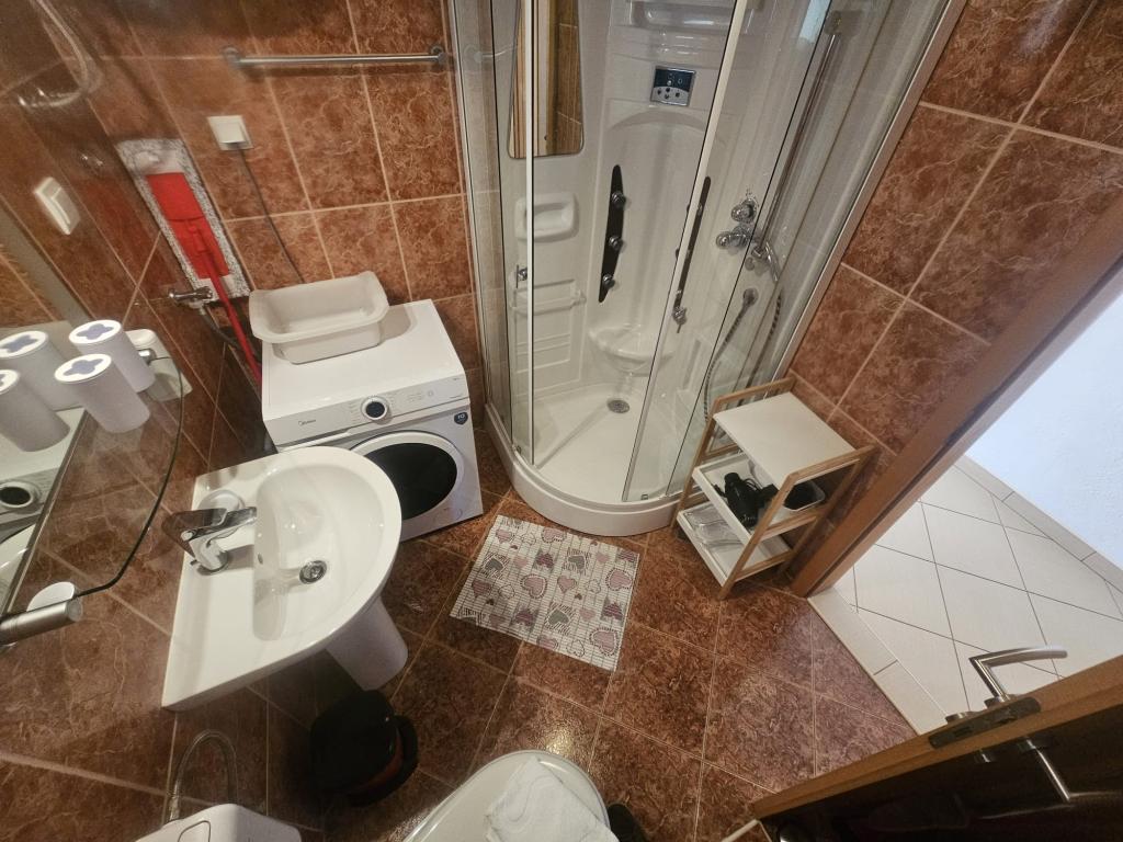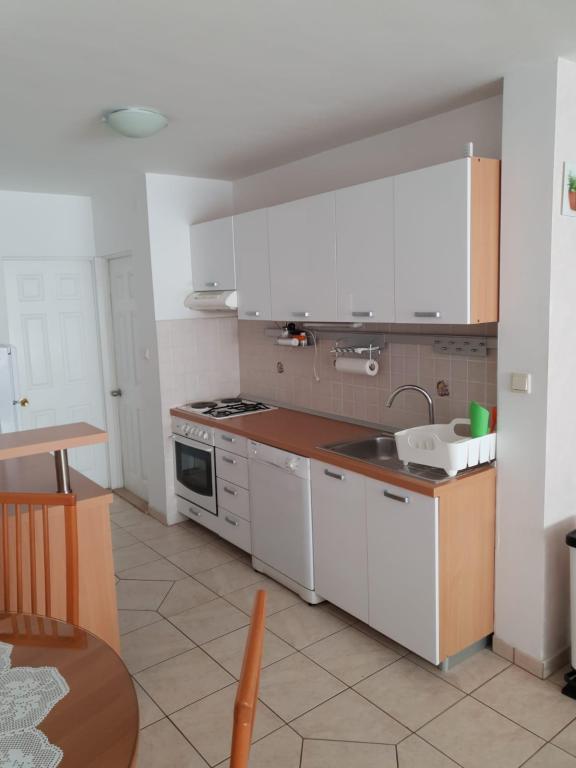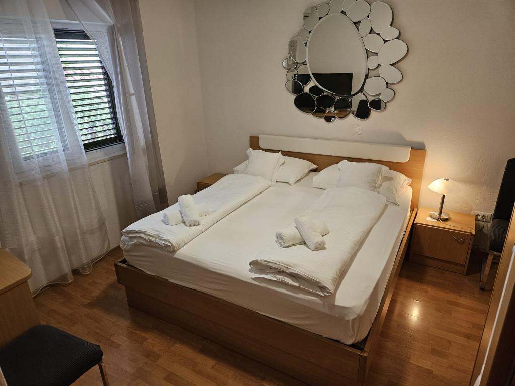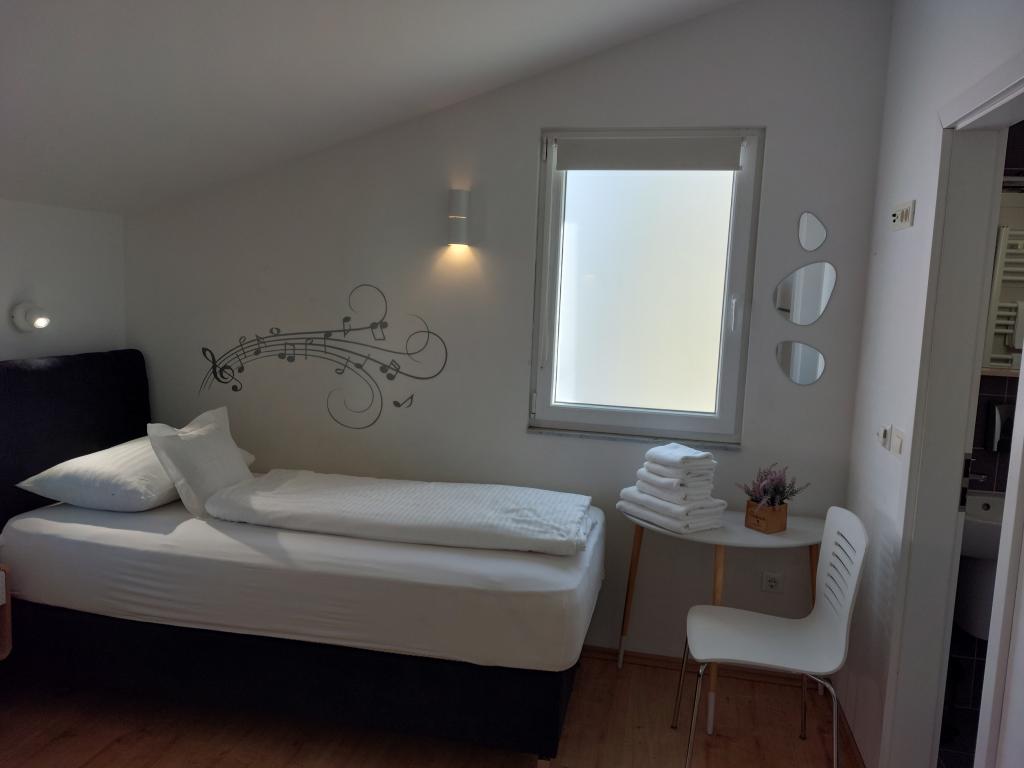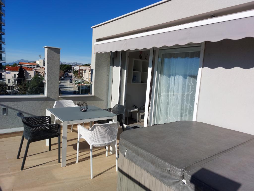 Apartmanjaink modernek és teljesen felszereltek, hogy tartózkodása a lehető legkényelmesebb és leggondtalanabb legyen. Minden apartmanban vasaló és vasalódeszka, hajszárító, filteres kávéfőző, vízforraló és mikrohullámú sütő található. A vendégek rendelkezésére állnak az ételek elkészítéséhez és tálalásához szükséges összes eszköz. Minden szállásegység síkképernyős TV-vel, ingyenes Wi-Fi-vel, beltéri és kültéri ülő- és pihenősarokkal felszerelt. A szállásegységek légkondicionáltak. A parkolást előre kell foglalni a létesítményen belüli korlátozott parkolóhelyek száma miatt. Érkezéskor friss ágynemű és törölközők várják Önt, amelyeket megbeszélés szerint cserélnek. Gyermekágy előzetes bejelentkezés alapján ingyenesen bérelhető. A létesítményen belül egy közös udvar található ülőbútorokkal, mediterrán növényekkel körülvéve - ideális hely a kikapcsolódásra. A létesítmény csendes környéken található, a tengertől a második sorban, mindössze 2 perc sétára a strandtól és tíz perc könnyű sétára a központtól.