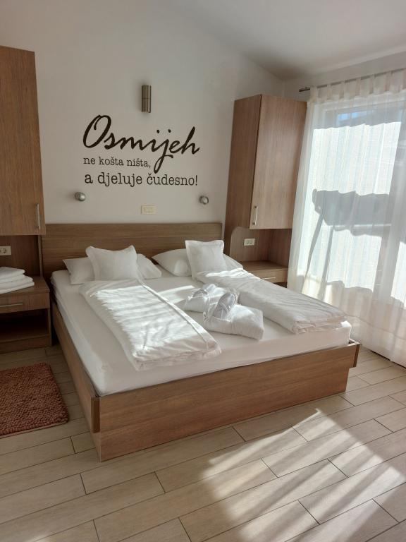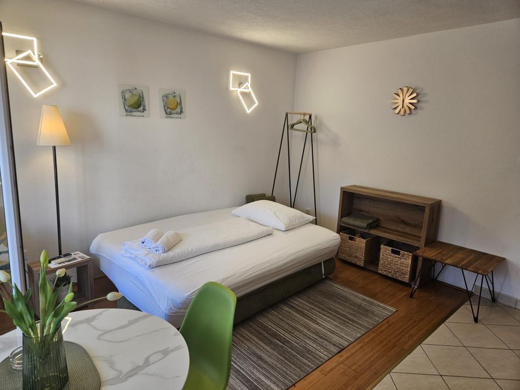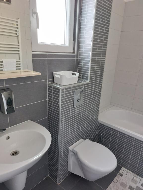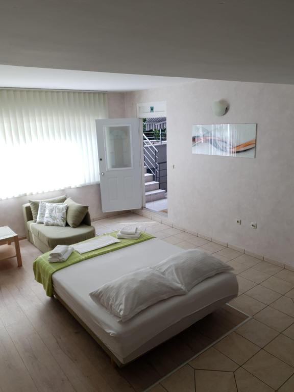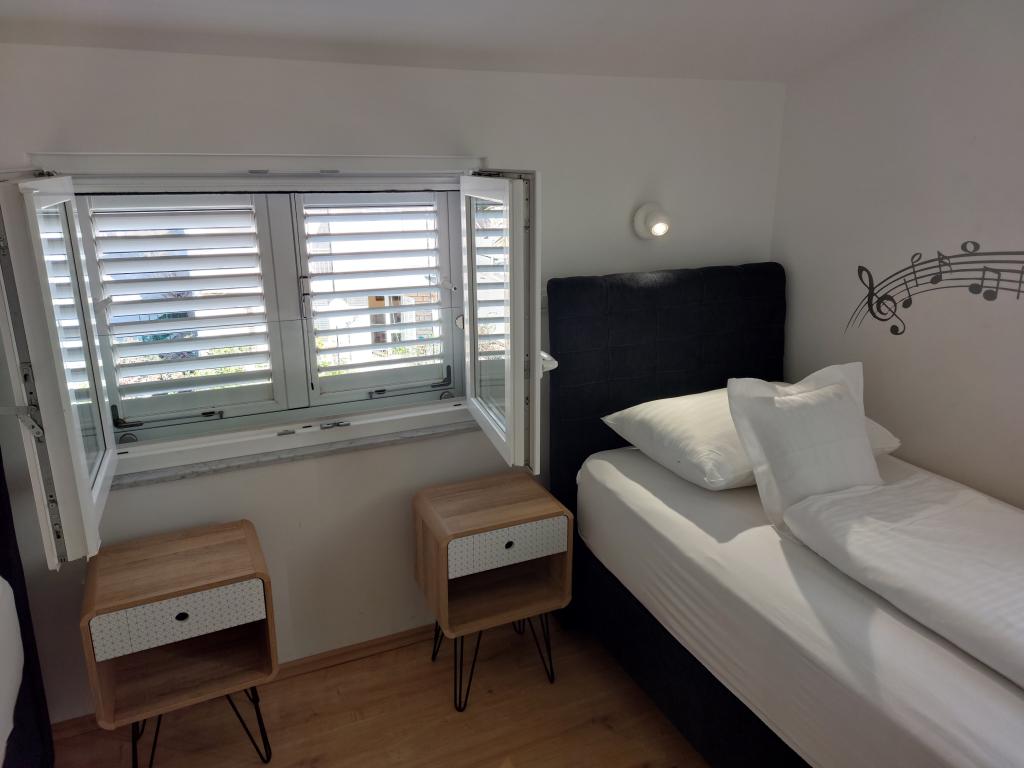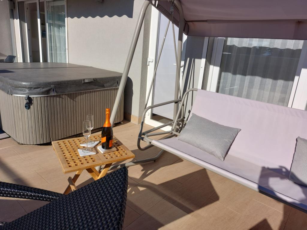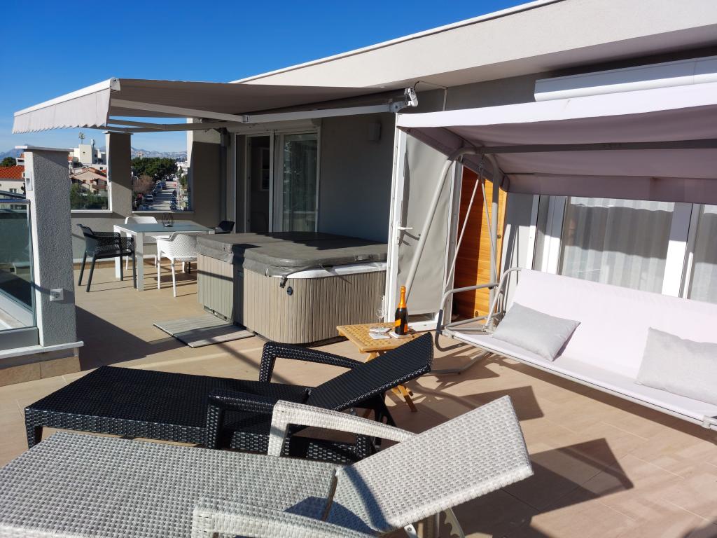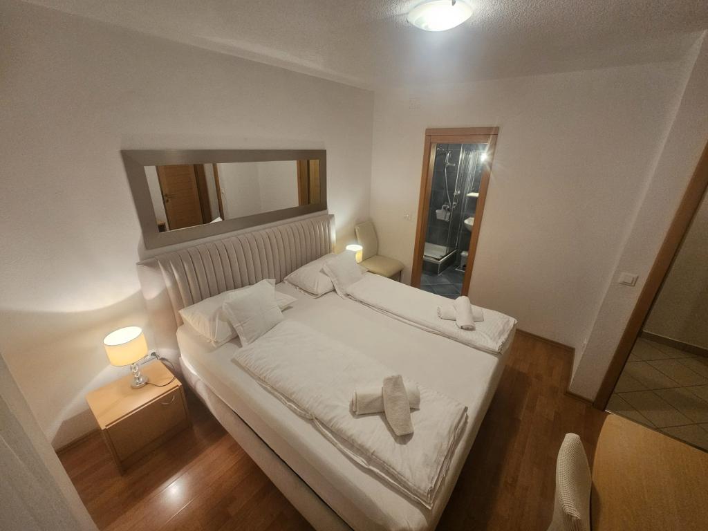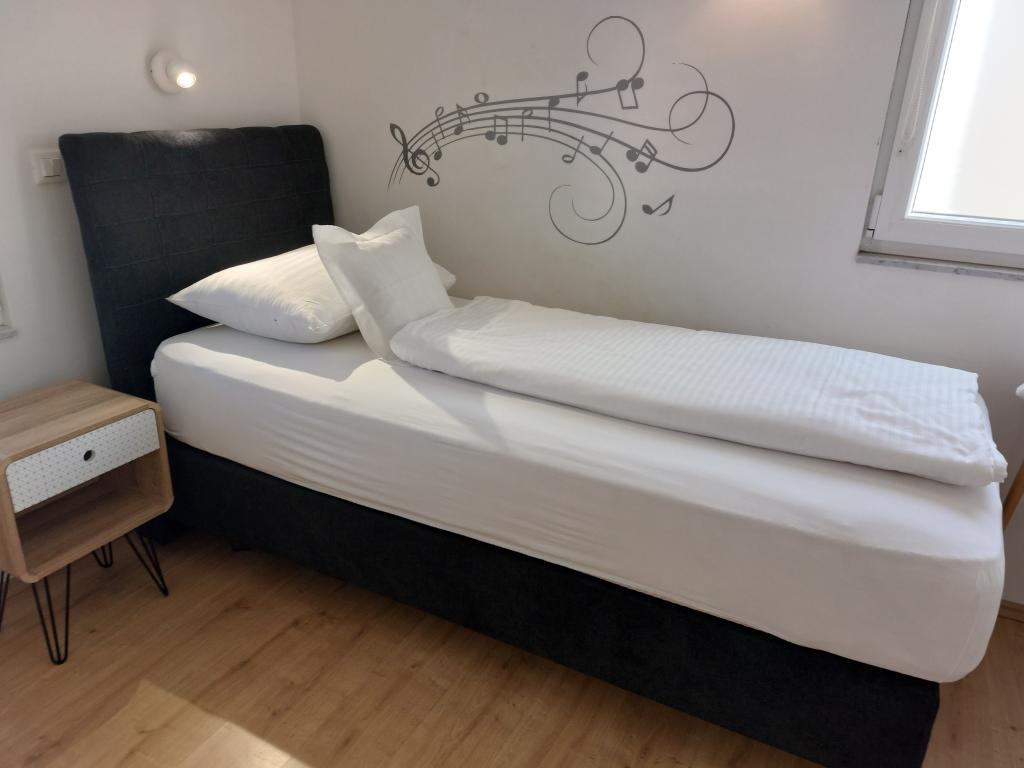 Apartmanjaink modernek és teljesen felszereltek, hogy tartózkodása a lehető legkényelmesebb és leggondtalanabb legyen. Minden apartmanban vasaló és vasalódeszka, hajszárító, filteres kávéfőző, vízforraló és mikrohullámú sütő található. A vendégek rendelkezésére állnak az ételek elkészítéséhez és tálalásához szükséges összes eszköz. Minden szállásegység síkképernyős TV-vel, ingyenes Wi-Fi-vel, beltéri és kültéri ülő- és pihenősarokkal felszerelt. A szállásegységek légkondicionáltak. A parkolást előre kell foglalni a létesítményen belüli korlátozott parkolóhelyek száma miatt. Érkezéskor friss ágynemű és törölközők várják Önt, amelyeket megbeszélés szerint cserélnek. Gyermekágy előzetes bejelentkezés alapján ingyenesen bérelhető. A létesítményen belül egy közös udvar található ülőbútorokkal, mediterrán növényekkel körülvéve - ideális hely a kikapcsolódásra. A létesítmény csendes környéken található, a tengertől a második sorban, mindössze 2 perc sétára a strandtól és tíz perc könnyű sétára a központtól.