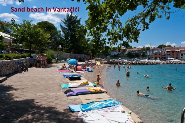 Teljesen felszerelt, modern apartman egy csendes helyen (a zsákutcából) egy kisvárosban Vantacici (2.5 km Malinska) szigeten. A ház egy privilegizált helyzetben szabadságra, mert a strandtól mindössze 50 m és buja növényzet veszi körül, így nem volt egy kellemes éghajlati zónában. Kínálunk, összesen 4 db lakosztály, egymástól egy parkolóhely a kertünkben az árnyékban. Házunk közvetlen kapcsolatban áll a sétaút mentén a parton, így még a kis gyerekek mehetnek a strandra és vissza szülők nélkül. A tengerparton vannak szép sétány (tengerparti sétány), amely összeköti Porat, és Vantacici Malinska.