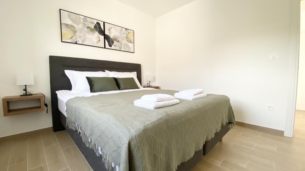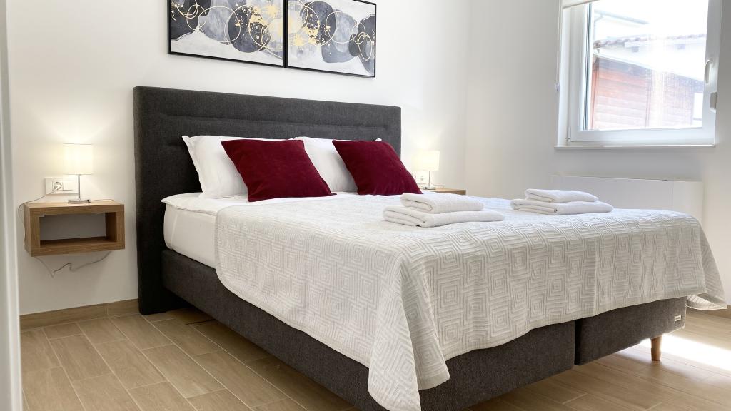 A Villa Malina egy apartmanház a falu csendes részén. Három modern felszereltségű, 50, 55 és 60 m2-es apartmannal rendelkezik, külön bejárattal és biztonságos parkolóhelyekkel az udvarban. Minden apartmanhoz nappali, hálószoba, fürdőszoba, konyha és fedett terasz tartozik. A nappaliban egy kanapéágy található, amely két fő számára pótágyként használható. A konyha edényekkel, konyhai törölközőkkel, sütővel, mikrohullámú sütővel, fagyasztóval ellátott hűtőszekrénnyel, vízforralóval, elektromos tűzhellyel, kenyérpirítóval és mosogatógéppel van felszerelve. További felszereltségként internet-hozzáférés, légkondicionáló, porszívó, mosógép és hajszárító is rendelkezésre áll. Ingyenes babaágy kérhető. 10 napos vagy hosszabb tartózkodás esetén 10% kedvezmény vehető igénybe.