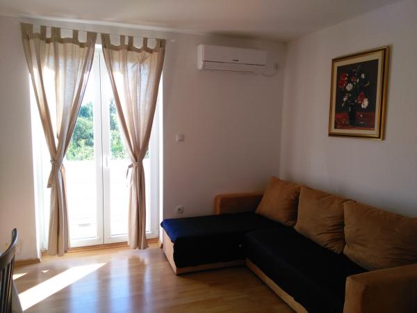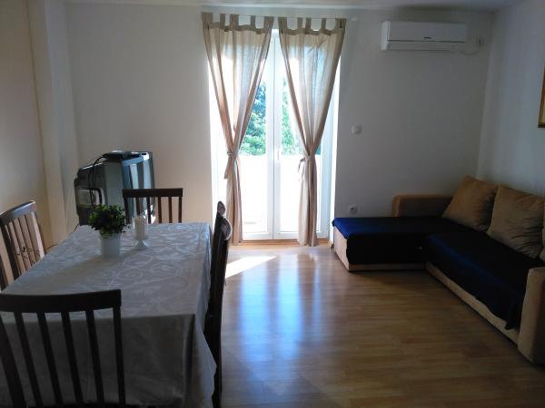 Nikolina apartmanok találhatók egy csendes részén, a Malinska, csendes, zsákutcában, természeti környezetben. A közelben van egy étterem, mely tradicionális ételek (350m); bolt 400 m, strand 850 m. Minden apartman felszerelt konyha edények és eszközök a főzéshez és a hűtőszekrény, nappali műholdas TV-vel, légkondicionálóval és ingyenes Wi-Fi hálózaton keresztül. A közelben található a régi, hagyományos falvak, járdák, kerékpár utak, múzeumok és sok más természeti és kulturális látnivalók. Rijeka repülőtér 15 km (Krk), buszmegálló 350 m (Bogovići), a vasútállomás 45 km (Rijeka).