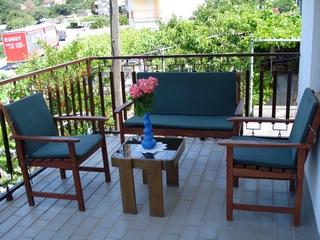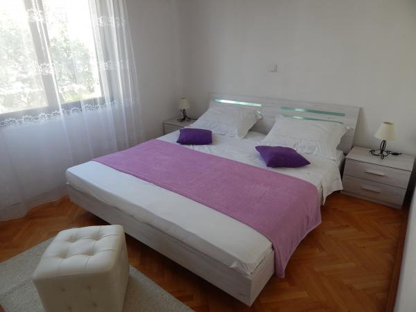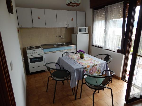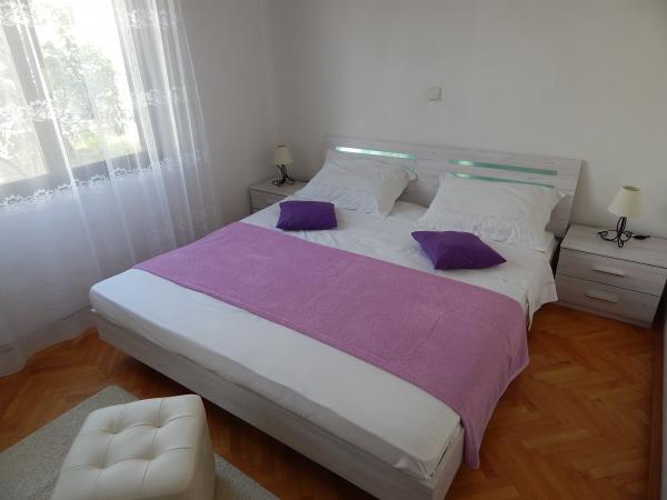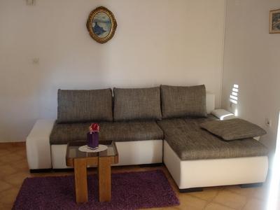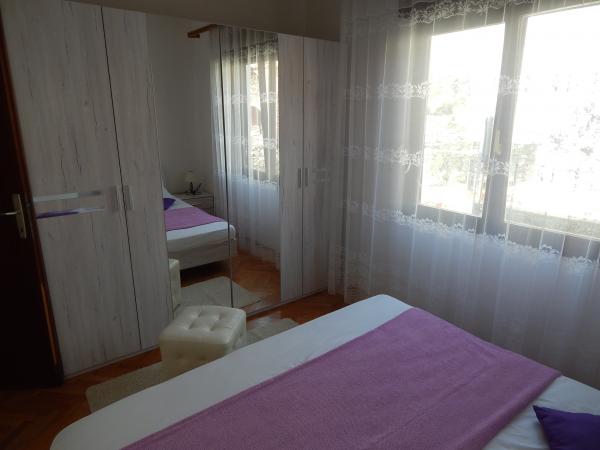 A lakás teljes legfelső emeleten, a ház, 60m2, légkondicionált, kilátással a tengerre. Meg 2 hálószoba, nappali kinyitható kanapéval, konyha (tűzhely, hűtőszekrény, evőeszközök és a főzés), fürdőszoba, nagy terasz 20m2, tengerre néző, ingyenes parkolás, grill, mosógép.