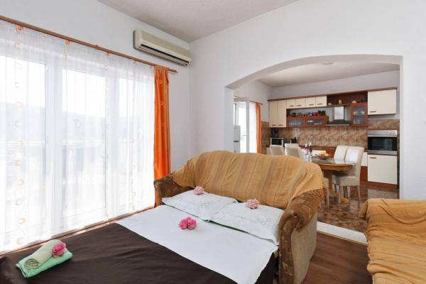 Teljesen felszerelt, modern apartman egy csendes részén a kisváros Marina Trogir mellett az Ön mindent, amire szükség van a vakáció. Az ingatlan található, 7 perc sétára a strandtól, 150m-re a városközponttól, és 40m a boltot. Trogir már csak 10 km-re, a Split és Sibenik 30 km.