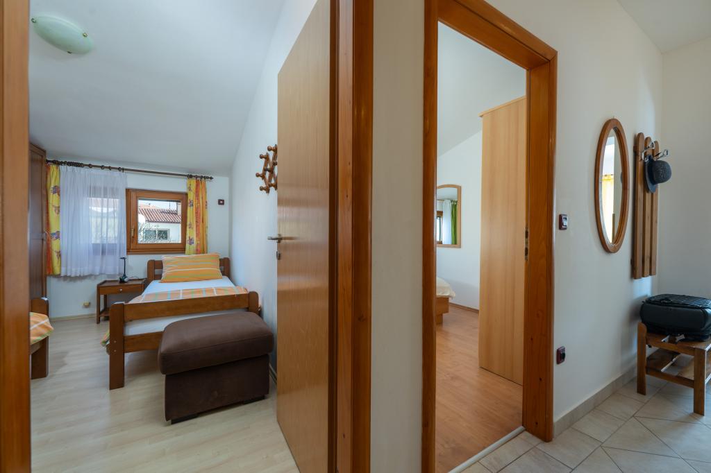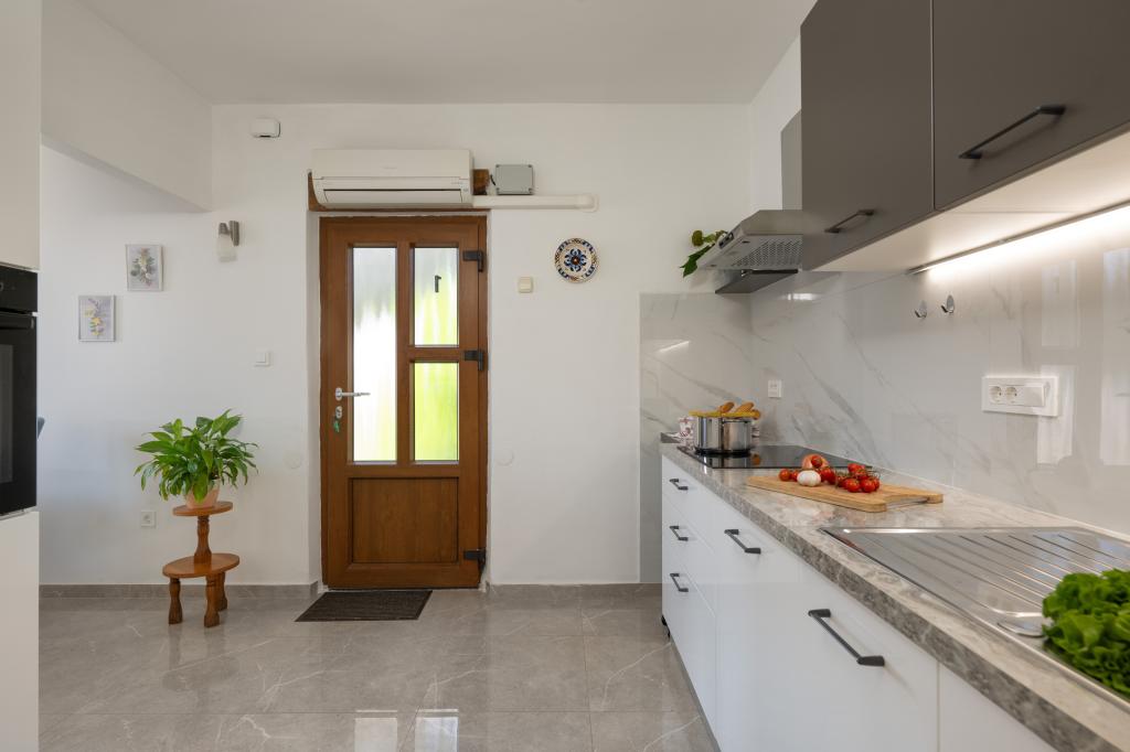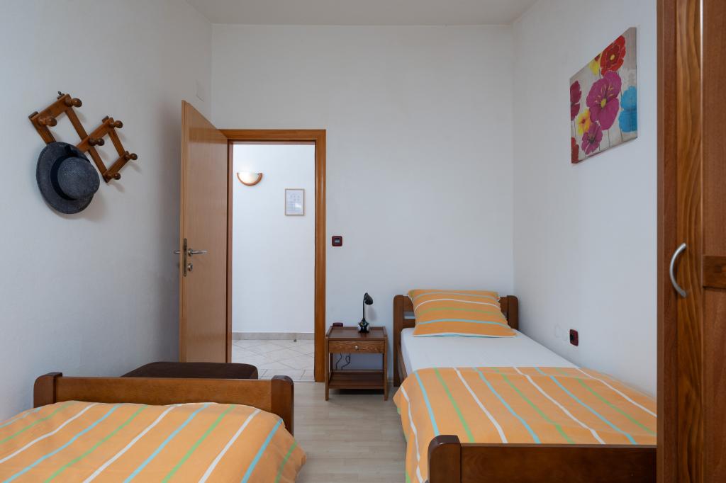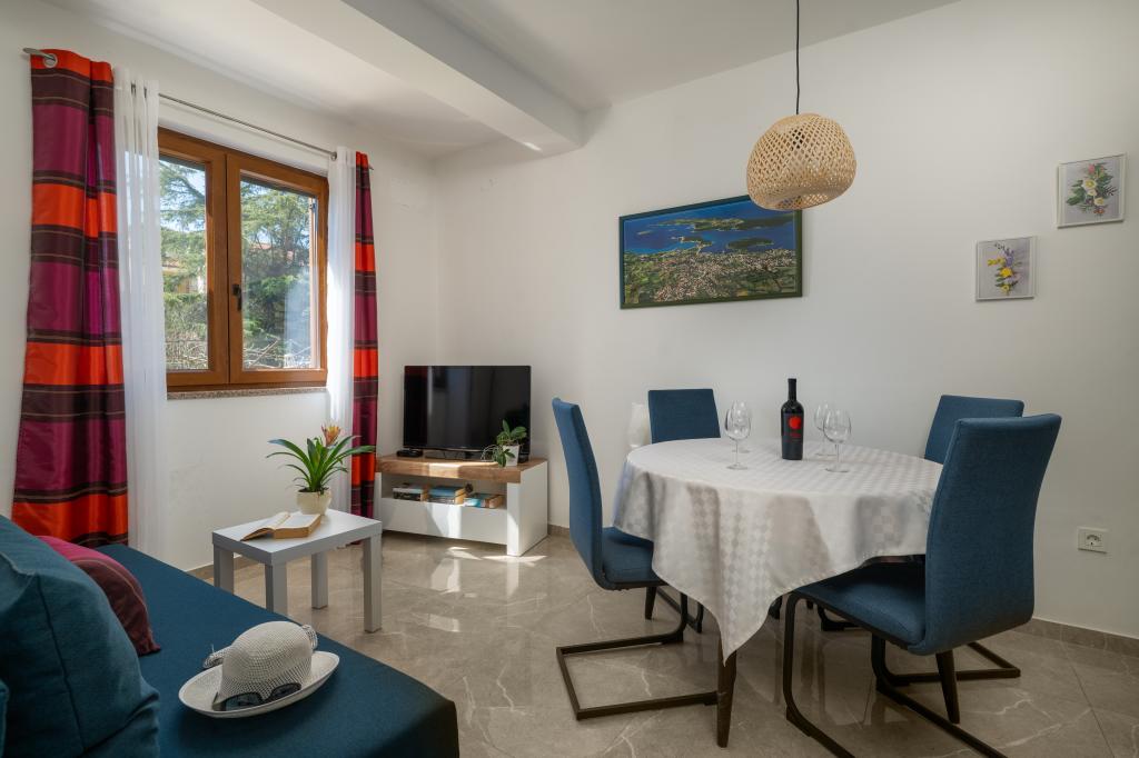 A ház Medulin csendes részén található, 250-300 méterre a strandtól, nagy kerttel és saját parkolóval. 4 apartman kiadó, teljesen és modernül felszerelt. 2 apartman a földszinten található. 1. számú apartman 2 hálószobával, konyhával, nappalival, fürdőszobával, terasszal. 2. számú apartman 1 hálószobával, konyhával, fürdőszobával, kerti terasszal. A 2. emeleten található a 3. számú apartman 2 hálószobával, konyhával, nappalival, fürdőszobával, erkéllyel. 4. számú apartman 1 hálószobával, konyhával, nappalival, fürdőszobával és erkéllyel. Minden apartman légkondicionálóval, vezeték nélküli internettel, műholdas TV-vel felszerelt. Az ár tartalmazza az ágyneműt, törölközőket, az idegenforgalmi adót és a regisztrációt. Minden apartmanhoz tartozik saját parkolóhely, kert és hordozható grillsütő. Mosógép bérlés 5 euró, pótágy 10 euró. A parkolás és az udvar videómegfigyelés alatt áll.