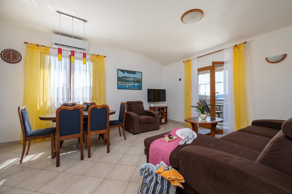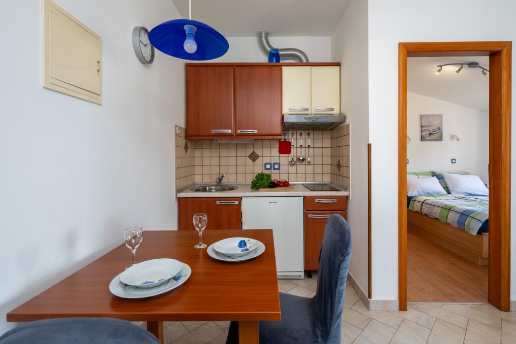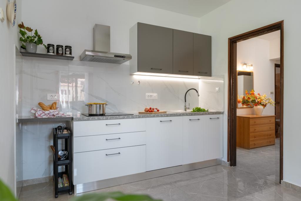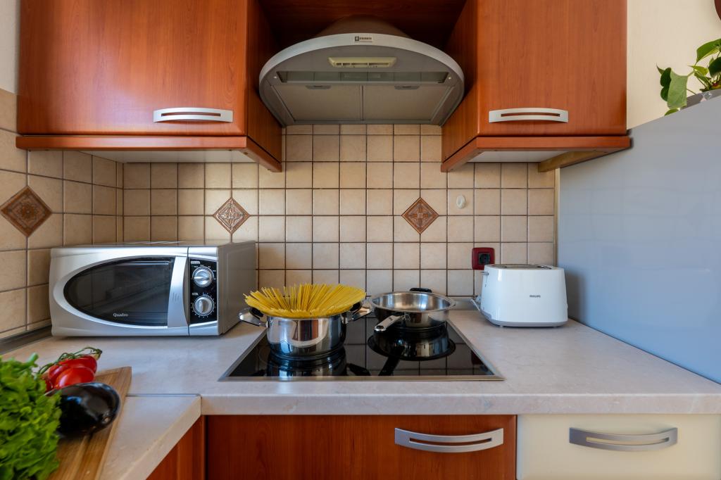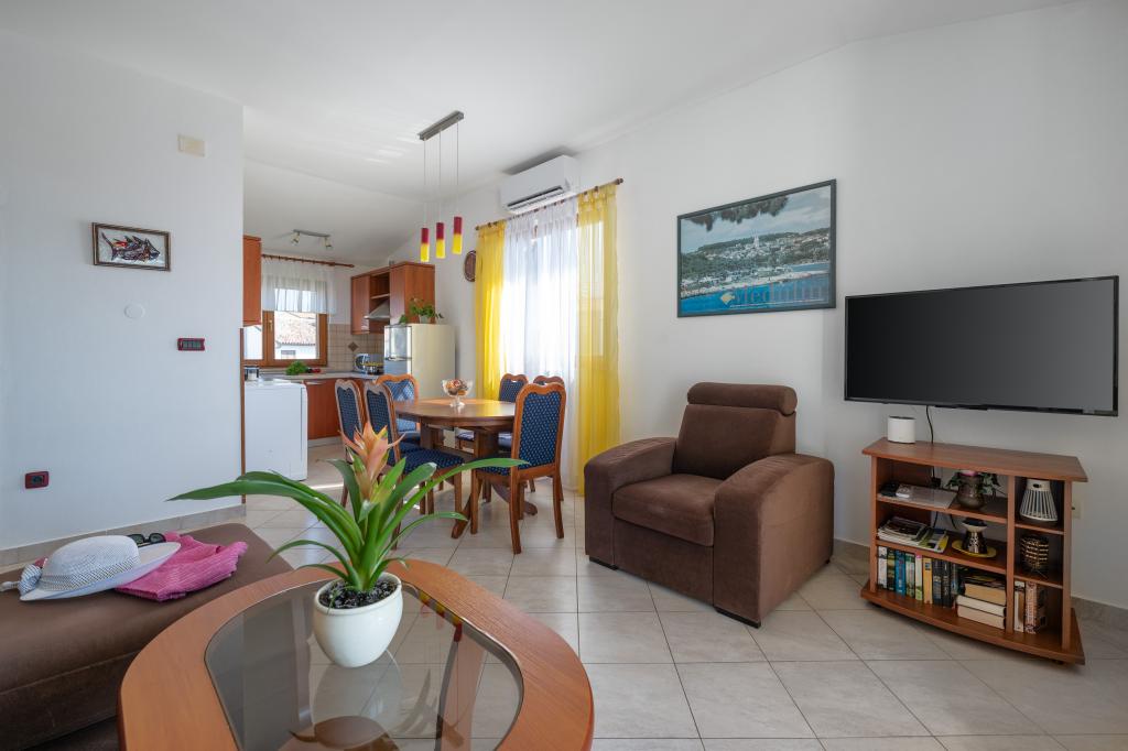 A ház Medulin csendes részén található, 250-300 méterre a strandtól, nagy kerttel és saját parkolóval. 4 apartman kiadó, teljesen és modernül felszerelt. 2 apartman a földszinten található. 1. számú apartman 2 hálószobával, konyhával, nappalival, fürdőszobával, terasszal. 2. számú apartman 1 hálószobával, konyhával, fürdőszobával, kerti terasszal. A 2. emeleten található a 3. számú apartman 2 hálószobával, konyhával, nappalival, fürdőszobával, erkéllyel. 4. számú apartman 1 hálószobával, konyhával, nappalival, fürdőszobával és erkéllyel. Minden apartman légkondicionálóval, vezeték nélküli internettel, műholdas TV-vel felszerelt. Az ár tartalmazza az ágyneműt, törölközőket, az idegenforgalmi adót és a regisztrációt. Minden apartmanhoz tartozik saját parkolóhely, kert és hordozható grillsütő. Mosógép bérlés 5 euró, pótágy 10 euró. A parkolás és az udvar videómegfigyelés alatt áll.