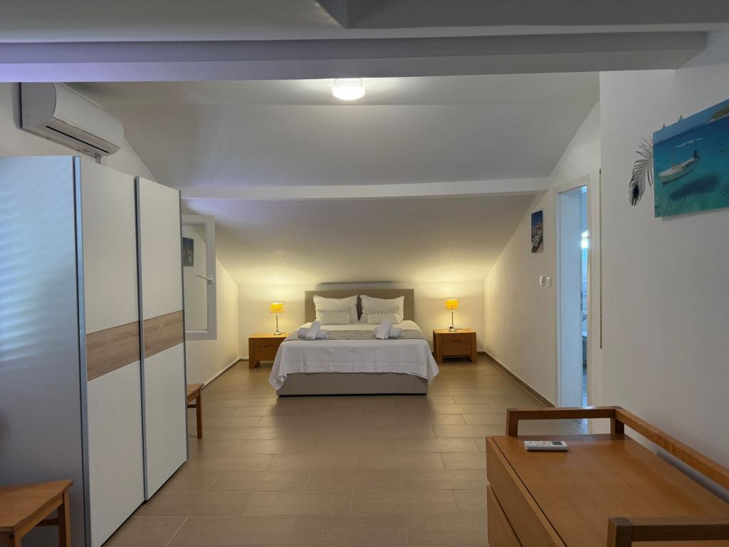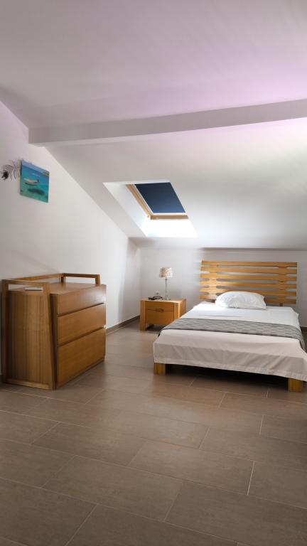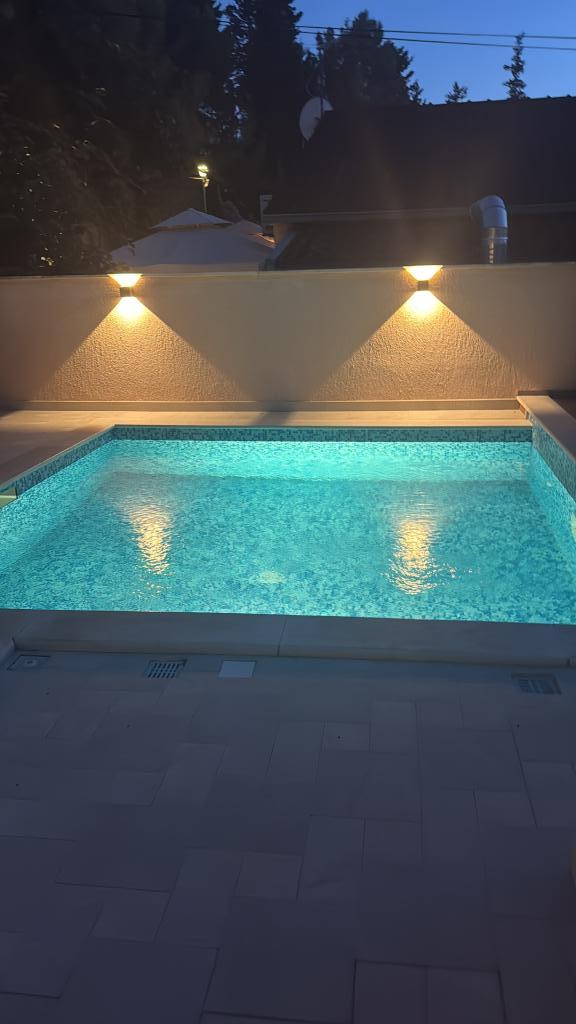 Üdvözöljük tágas Wisteria apartmanunkban, amely a földszinten található, a csendes Vlaška-öbölben. A legtöbb milnai szálláshellyel ellentétben lépcső nélkül közelíthető meg, ami ideális babakocsival vagy kerékpárral érkező családok számára. Kerékpárjaink is rendelkezésre állnak a környék felfedezéséhez. Az apartman kivételesen magas mennyezettel (3 m) és nagy panorámás falakkal rendelkezik, amelyek ritka tágasságérzetet biztosítanak. Kiváló minőségű DanKuchen konyhával felszerelt, és teljes kényelmet kínál két WC-vel, két bidével, fürdőkáddal és zuhanyzóval. Élvezze mediterrán kertünket hagyományos dalmát grillezővel, tóval és egy luxus Wisteriával, amely tavasszal díszíti az egész birtokot. 200 méteres körzetben éttermek (OMO, Bago, Plaža) és kávézók találhatók gyönyörű kilátással. A katamarán móló mindössze 200 méterre található, ahonnan könnyen ellátogathat Splitbe, Hvarba vagy Dubrovnikba. Ingyenes parkolás biztosított. Élvezze fűtött medencénket, amely további luxust és kényelmet biztosít nyaralása alatt.