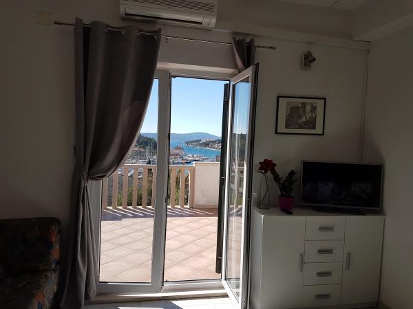 Nagy tengerre néző apartman gyönyörű kerttel és helyen, a közepén MILNA. Lakás volt, tiszta és jól karbantartott, és a ovner Mrs.Maria szép volt és segítőkész.