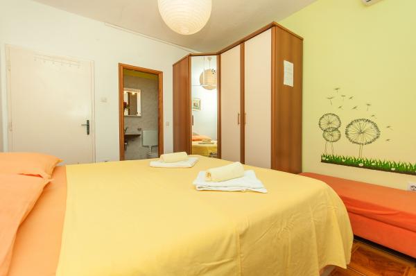 Az apartmanok találhatók egy csendes kis falu, ideális családi nyaralás és felejthetetlen emlékeket. Az apartmanok találhatók, a déli oldalon a ház, és egy tengerre néző. A tengertől való távolság és a strandtól 200 m. Az első apartman 4 2 áll wc, konyha és két hálószoba, mindkettő felszerelt légkondicionáló. A konyha található, a ház előtt, így nem melegíti a terület, ahol lakik. Más lakás 2 1 egy szoba légkondicionált, WC és konyha, amely szintén található a ház előtt. A déli oldalon a ház egy nagy kert mellett a szőlő, hogy olyan természeti árnyék, azzal a lehetőséggel, barbecue. Ingyenes parkolási lehetőség áll rendelkezésre a helyszínen. A bejárat közös. A szobák a déli oldalon a ház, egy WC lakás 4 2 található szerte a szobában, a folyosón. Wi-Fi áll rendelkezésre az egész épületben.