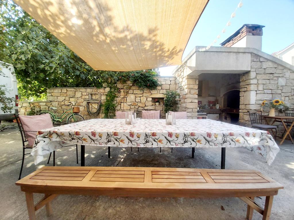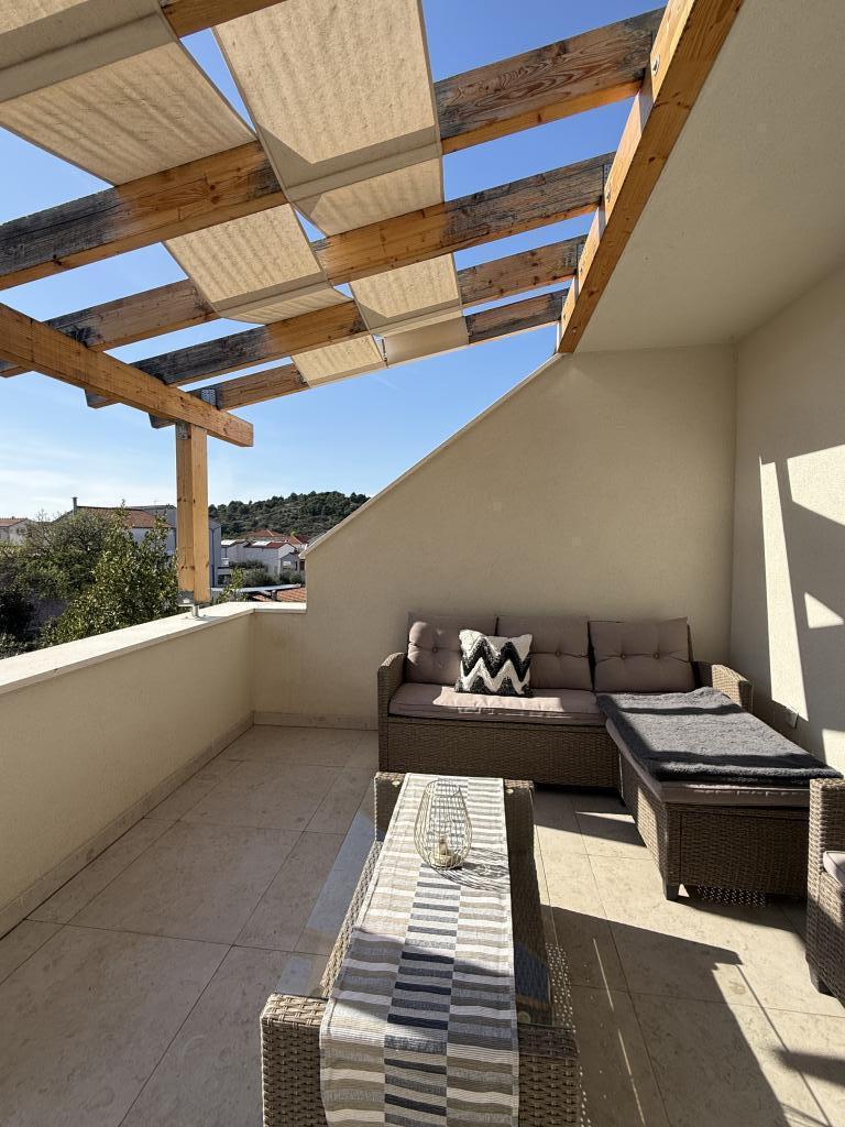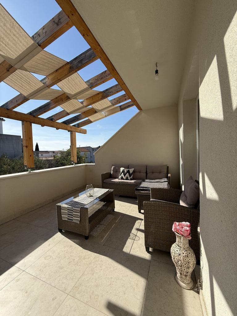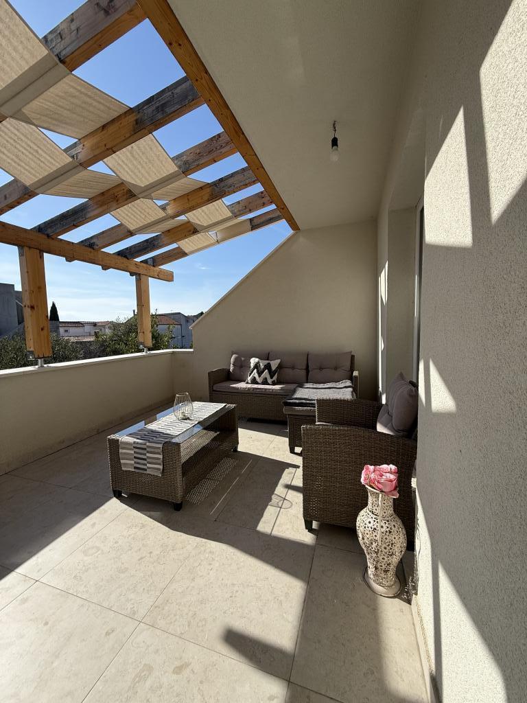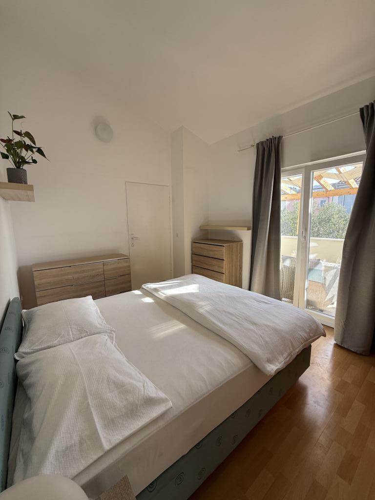 Stúdióapartman 12 m2-es terasszal. Az apartman 2 fő részére készült. Nagy franciaágy, teljesen felszerelt konyha, étkezőasztal, fürdőszoba. Terasz és étkezőasztal. Biztonságos parkolóhely az apartman előtt egy autó számára. Közel a strandhoz. Az apartman 5 perc sétára található a Slanica strandtól és 7 perc sétára Murter központjától.