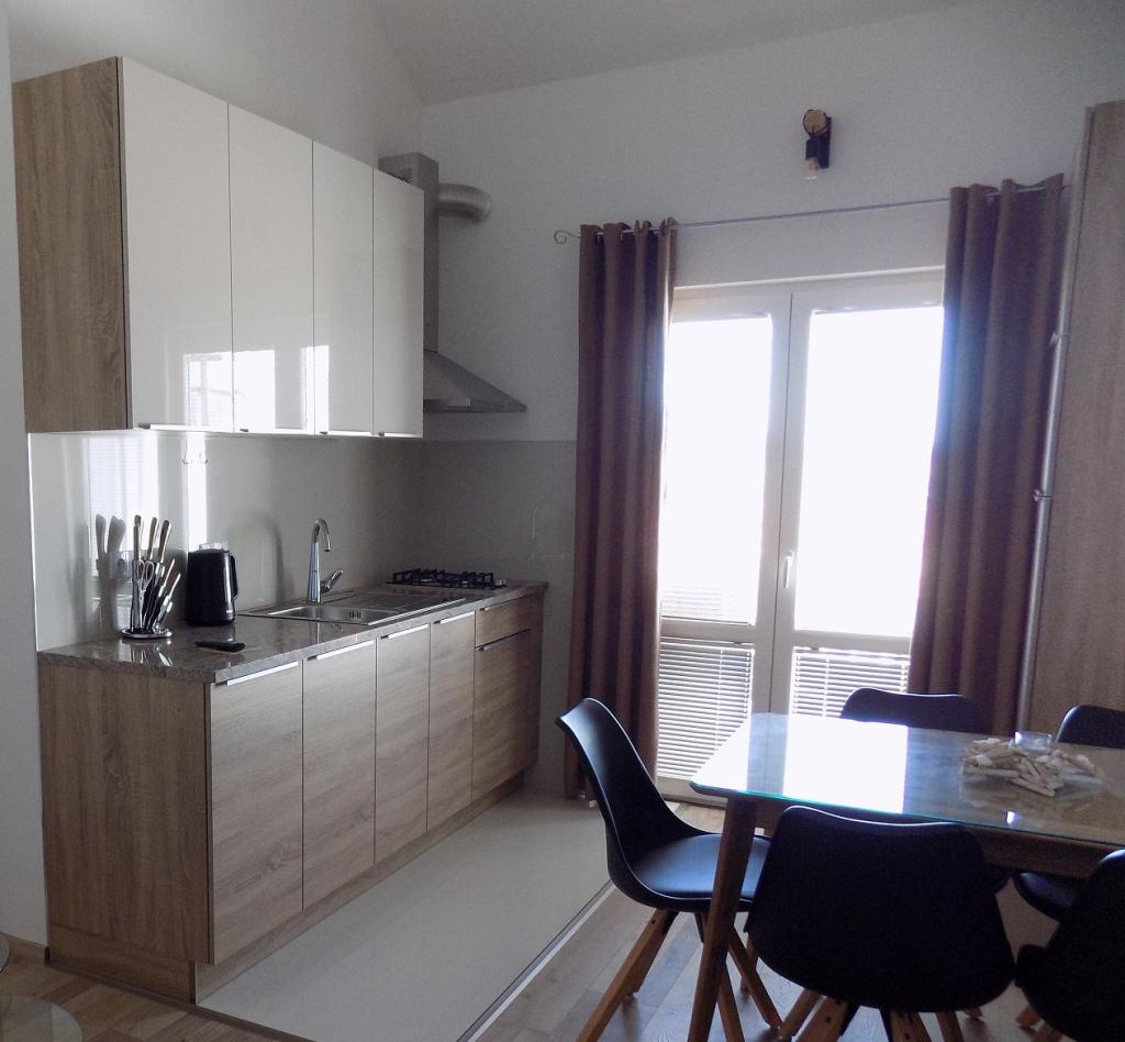 Mi maradt a lakásban 1-10 augusztus 2 + 1 gyermek 3,5 éves. Kellemesen meglepett a legelején. Parkolás az autó az alagsorban vagy kívül fedél alatt, egy hely, kerékpár, babakocsi, stb ... nem probléma. Az első emeleten 4 apartman, a közepén tiszta és modern. Wifi a jó sor, légkondicionálás Ez tette a várható hideg után visszatért a strandtól. Beépített konyha, akkor főzni valamit magának. A legnagyobb benyomást tette a teraszon, kilátással a tengerre és a tengeri. A tulajdonosok nagyon szép. A legközelebbi strand az első volt, kb 8 perc a következő mintegy 25-15 és a legtöbb ott volt a leghidegebb vízben melegítse a legjobb hely, nem olyan zsúfolt, mint a többi. Ahhoz, hogy a város is a közelben. Ajánlott. Van egy szép ünnep.