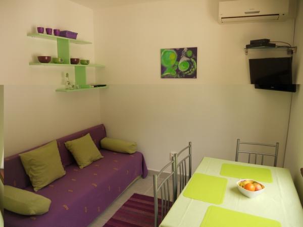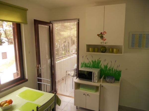 A zöld apartman 4-5 fő részére alkalmas, két hálószobával, nappalival, konyhával, fürdőszobával, terasszal és erkéllyel. Az apartmanhoz erkély és terasz is tartozik, ahol a vendégek a szabadban, árnyékban étkezhetnek. A kék apartman 4 fő részére alkalmas, egy hálószobával, nappalival, konyhával, fürdőszobával és terasszal. A kék apartmanban mosogatógép is található. Az apartmanok modernek, nemrég felújítottak és stílusosan berendezettek. A bútorok nagy része új, és minden apartmanhoz külön készült. A strand 200 méterre található, és egy fenyveserdőn keresztül gyalogosan érhető el. A közelben nincs forgalmas út. Egy bolt is található körülbelül 50 méterre, egy közeli étterem pedig 200 méterre található az apartmantól. A strandon további szolgáltatások közé tartozik egy diszkó, számos kávézó és egy pékség. Nečujam mellett Šolta szigetén Stomorska, Maslinica és számos rejtett öböl meglátogatását ajánljuk.