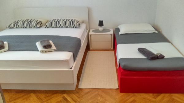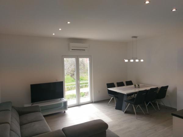 Apartmanjaink egy csendes helyen, Neviđane-ban találhatók, Pašman szigetén, a ház mellett, a tenger mellett. Az apartmanok teljesen felszereltek, és gyönyörű kilátást nyújtanak a tengerre. A ház mellett egy kis kavicsos és beton tengerpart található. A főbb homokos strand, ahol a kísérő felszerelések ideálisak gyermekes családok számára, mindössze 5 perces sétával elérhetők. Az üzlet, étterem, posta, mentő, sportpálya 5-10 perc sétával elérhető.