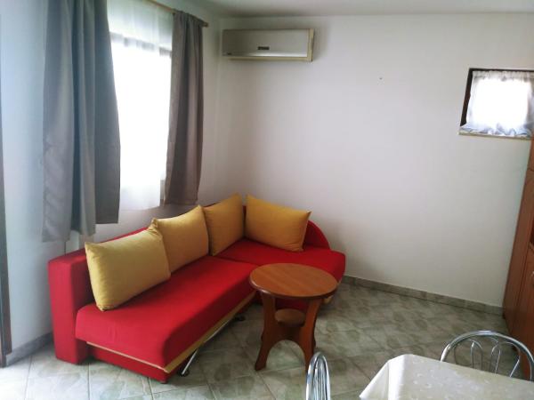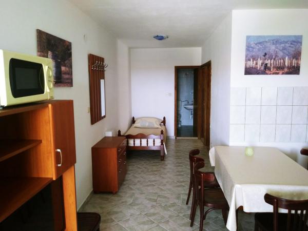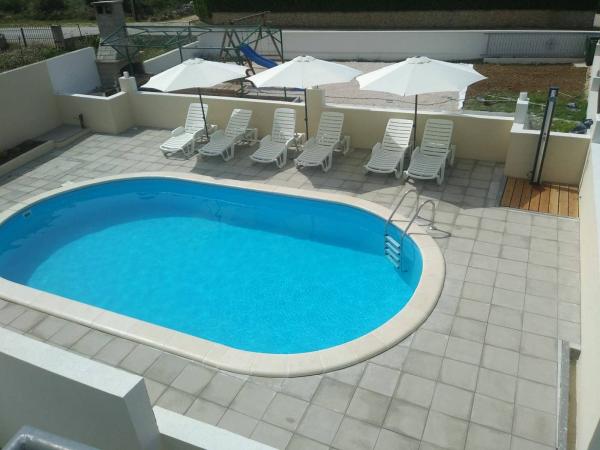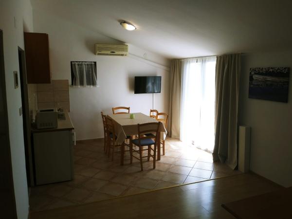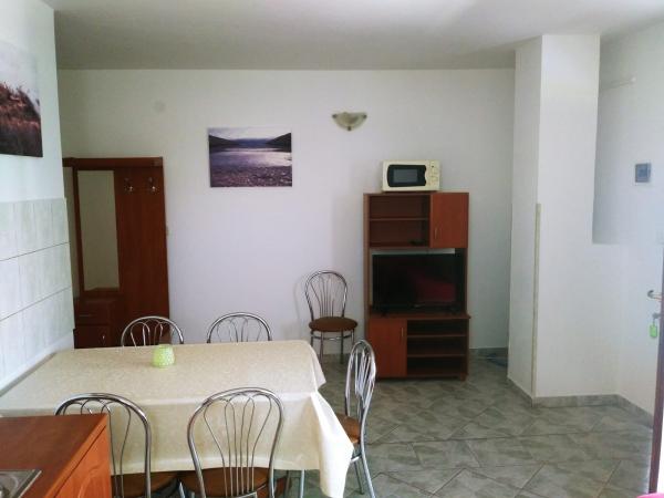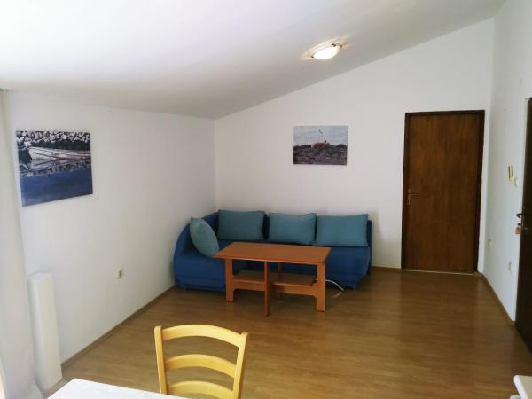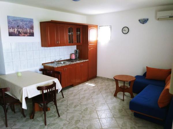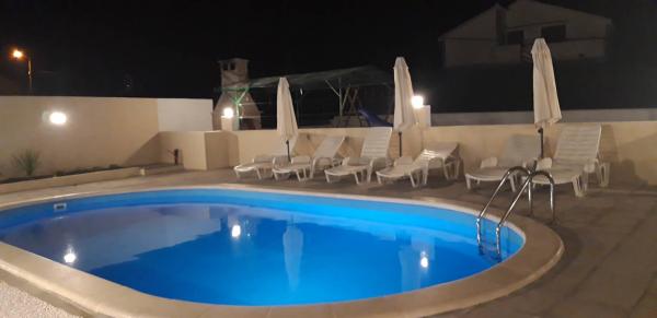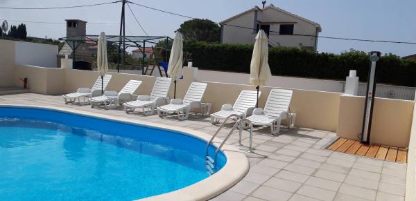 Az apartmanok Vrsi-Mulóban, Nin városa közelében találhatók. A Vrsi-t 35 km-es partszakasz veszi körül, és különböző strandokat kínál mindenféle ízléshez, mint a kő, homok, kavics. A legközelebbi strand kavicsos, kisgyermekek számára alkalmas. Az üzlet 80 méterre van az apartmantól, és az étterem 100 méterre van. Vrsimában sok bár, étterem és vendéglő található. Lehetőség van hajó, jet-ski, pedálhajók és hajóutak bérlésére. Az apartmanokban parkoló, napozó grill, játszótér, trambulin és asztalitenisz található. Az udvar elkerített és biztonságos gyerekeknek. A medence mérete 8x4, 2 m és 1,5 m mély. Az apartmanok légkondicionálóval, Wi-Fi-vel, mikrohullámú sütővel, elektromos vízforralóval, tv-vel, terasszal rendelkeznek. És ha szüksége van rá, akkor az Ön rendelkezésére áll.
