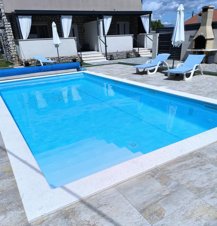 Fűtött medence (zárva 2025.10.15. - 2026.05.01.) Üdvözöljük a Royal Place Apartmentsben, mely apartmanok a bájos királyi városban, Ninben, mindössze 16 km-re Zadar történelmi városától. Két luxusapartmant kínálunk. Egy hálószobás (HAMAROSAN 2026-ban családi szoba) és két hálószobás apartmanok a földszinten, csendes helyen, mindössze 200 méterre a festői tengerparti sétánytól, a helyi éttermektől és a városközponttól. A strand 900 méterre található. Az épület nagy emeletén egy békés, bekerített udvar található, buja mediterrán növényekkel teli területen. Ezen kívül van egy fűtött sósvizes medence, napozóterület nyugágyakkal és napernyőkkel, kültéri zuhanyzó és grillező. Az épület felső emelete nem megközelíthető.