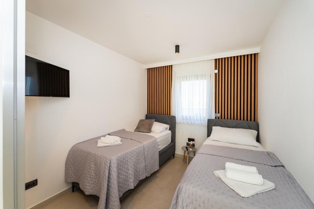 A Villa LaMag, egy modern, újonnan épült villa, a gyönyörű, csendes Vrsi Zukve faluban található, amely 20 km-re fekszik Zadartól és 5 km-re Nin királyi városától, valamint körülbelül 2,5 órás autóútra Zágrábtól. A strand mindössze 3 perc sétára található, a legközelebbi étterem mindössze 400 méterre, a szupermarket pedig kevesebb mint egy kilométerre található. Fedezze fel Nina és Ljubača gyönyörű homokos strandjait (10 perc autóútra), vagy látogassa meg a közeli Pag és Vir szigeteit, amelyeket egy híd köt össze. Zadar óvárosának történelmi varázsa, keskeny utcáival és kulturális kincseivel mindössze 25 perces autóútra található. Ezáltal apartmanja tökéletes kiindulóponttá válik e hihetetlen tengerparti régió csodáinak felfedezéséhez.