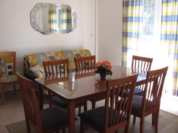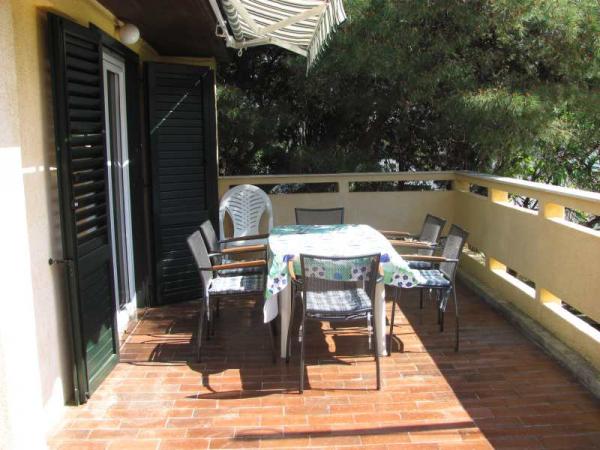 Teljesen felszerelt, modern apartman 200 méterre a központtól és 300 m-re a tengertől, egy csendes területen sok zöld és parkoló. Nem található az 1. emeleten külön bejárattal, 3 hálószoba, nagy nappali nyíló terasz napellenző és barbecue. Továbbá 2 fürdőszoba egyik kádas, a másik zuhanyzós, légkondicionált, műholdas TV-vel és ingyenes internet-hozzáféréssel. A konyha fel van szerelve egy tűzhely, hűtőszekrény, mikrohullámú sütő és minden edény. Mosoda, gyerekágy kérésre.