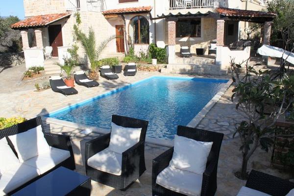 Kínálunk 11 apartman három ház ugyanazon udvarban. Minden apartman a tengerre néz, és felszerelt SAT / TV és légkondicionáló. A vendégek használhatják a medencét, 2 barbecue, nagy parkoló helyet a hajók és pótkocsik, mosoda, internet-hozzáférés és a kocsma egy csoportja vacsora borospince.
