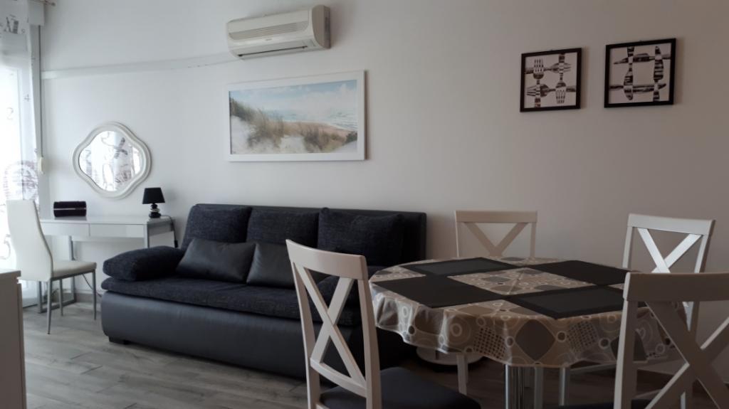 Újonnan felújított lakás, 50 méterre a tengertől, Novi Vinodolski csendes részén. Az apartmanban egy kétágyas hálószoba TV-vel, nappali pótággyal 2 fő részére és TV-vel. Teljesen felszerelt konyha étkezővel: elektromos tűzhely, főzőlap, sütő, mikrohullámú sütő, hűtőszekrény fagyasztóval, mosogatógép, vízforraló és kenyérpirító. Fürdőszoba - zuhanyzó, mosdó, WC, bidé, mosógép és hajszárító. Erkély tengerre néző. Az apartman zöldövezetben van, udvari közös grillel. Közel a sziklás, kavicsos és konkrét strandokhoz, csak pár perc sétára. Van egy parkolóhely az épület előtt.