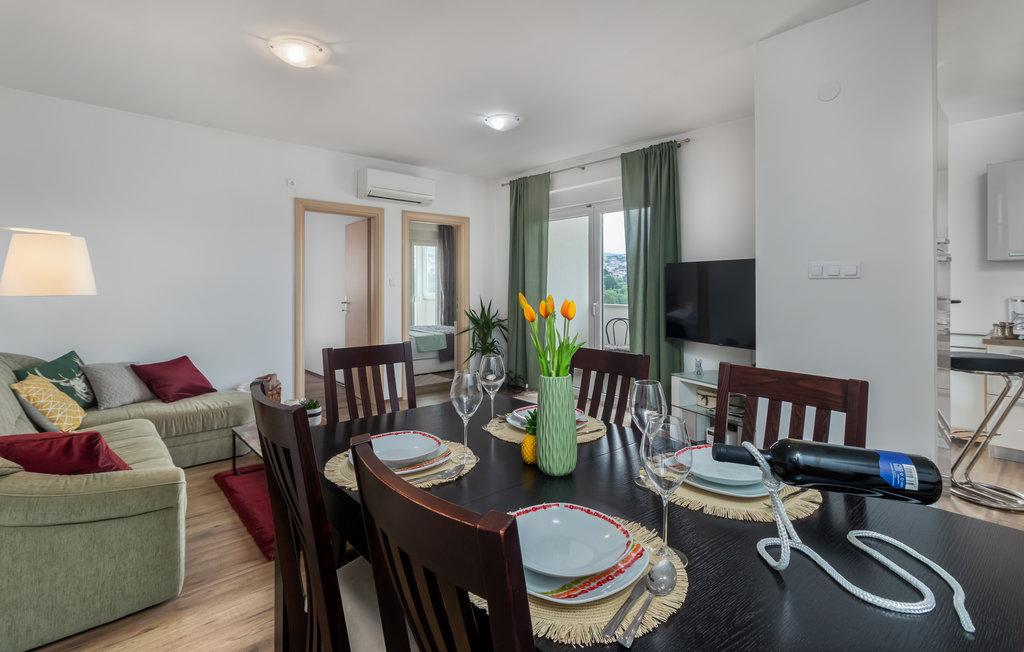 Üdvözöljük a teljesen és modern módon felszerelt, kényelmes apartmanban (65 m2 - 1. emelet), amely a város legcsendesebb és legjobbra értékelt részén (Kalvarija - Panos 30) található. Az ingatlan 5-7 perc sétára (300 m) található az első strandtól (Bribirska obala), a Marina Novi kikötőtől, üzletektől (Lidl) és éttermektől, valamint 10 perc sétára a városközponttól. Ez a légkondicionált apartman 2 hálószobával, egy nagy nappalival, 2 erkéllyel rendelkezik, ahonnan gyönyörű kilátás nyílik a kikötőre és a városra, egy teljesen felszerelt konyhával és egy fürdőszobával, amelyben minden szükséges konyhai és higiéniai eszköz megtalálható. A Sanja apartman 3 csillagos, ingyenes parkolási lehetőséggel, valamint ingyenes wifivel rendelkezik az egész épületben. Távolság a Trsat várától 40 km; a Rijeka repülőtértől (Krk) 30 km... Ha igazi pihenésre, nyugalomra és csendre vágyik, a Sanja apartman a megfelelő választás az Ön számára.
