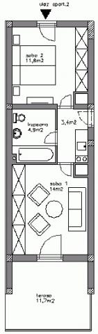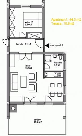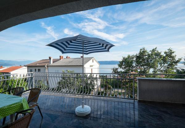 Két hálószobás lakás, nagy terasszal, egy csendes részén Novi Vinodolski, kevesebb, mint két óra autóútra Zágráb. Barbecue tárgyalt. Megjegyzés: Apartman 1 és Apartman 2 csatlakozhat és megosztani. Ideális két család!