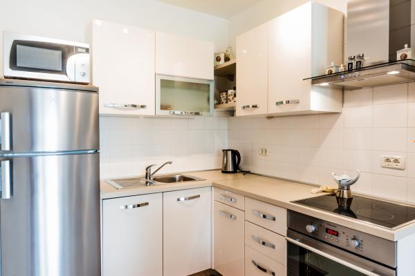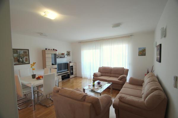 Modern berendezett lakás található, egy csendes külvárosában, közel a tengerhez. A lakás 2 szoba, konyha, fürdőszoba, nappali, étkező (2 pótággyal), és egy tengerre néző erkéllyel. A lakáshoz tartozik egy zárt parkolóhely. Az épület, amely otthont ad a app egy szép udvar és a ház előtt van többcélú pálya és egy kis park egy játékterem és gyermekek.
