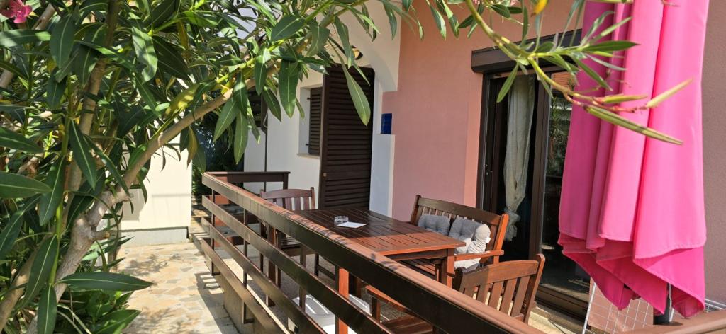 A strand közvetlen közelében található Marina ház egy fenyőerdőnek és egy festői hosszú sétánynak támaszkodik, ahonnan kilátás nyílik a tenger végtelen kékjére. Egyik irányban csendes strandokhoz és rejtett öblökhöz vezet, a másik irányban a kikötőn keresztül a város központjába. A sétány mentén éttermek, kávézók, gyerekpark, sportpályák, teniszpályák, minigolfpálya, szabadtéri edzőterem és egy zöld zászlós öko pláza található. A fenyők, a tenger és a só illata kellemes és különleges hangulatot kölcsönöz az egész légkörnek. A House Marina tökéletes hely egy csendes nyaraláshoz, de akár egy aktív természetben való tartózkodáshoz is. A ház belső terét a klasszikus és a modern stílus ötvözésére tervezték. A lényeg, hogy maximalizáljuk a hálószoba és más terek kényelmét. Az apartmanok kényelmesek, modern gépekkel felszereltek. Minden apartmanhoz tágas terasz tartozik, ahol a vendégek pihenhetnek. A ház udvarán grillező és parkoló található. Egy perc sétára van a strandtól és 10 percre a városközponttól, a tengerparti sétányon.